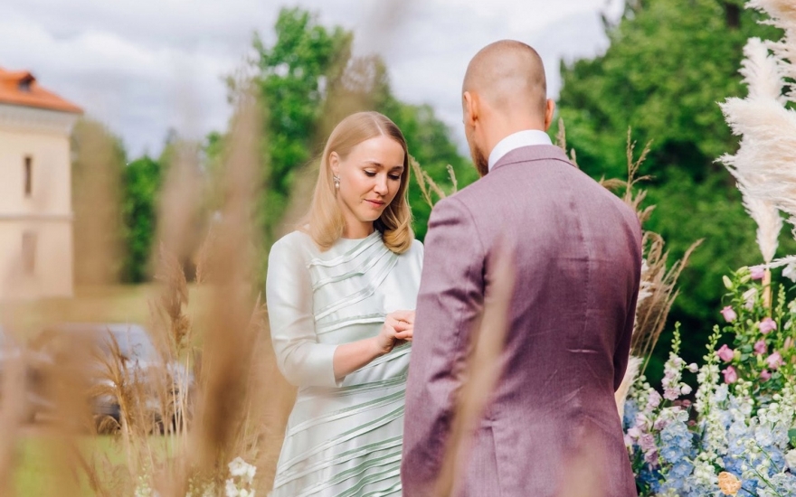 После первой же примерки модель отказалась от платья Elie Saab, купленного «на всякий случай» и заказала у петербургского бренда еще одно — почти невесомое, в ландышах. В итоге в наряде костюмера Дженнифер Лопес, Наоми Уоттс и Анджелины Джоли Ирина пробыла всего 15 минут — оно оказалось тесным в талии. «Во время свадьбы я была уже на третьем месяце беременности, поэтому заказанные у Татьяны Валентиновны за полгода платья пришлось чуть-чуть перешивать для начинающего расти животика. Плюс в первом, главном варианте мы переделали вырез на закрытое горло — в таком виде он больше подходил под мое настроение».