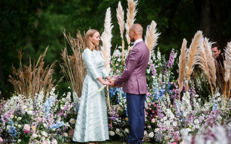 Бонусом к двум заказам в бутике на Невском проспекте Ирина получила пригласительные с цветочными принтами, разработанные Татьяной Валентиновной лично. Они задали настроение декору зала и всему празднику, который, по словам Водолазовой, «утопал в цветах».