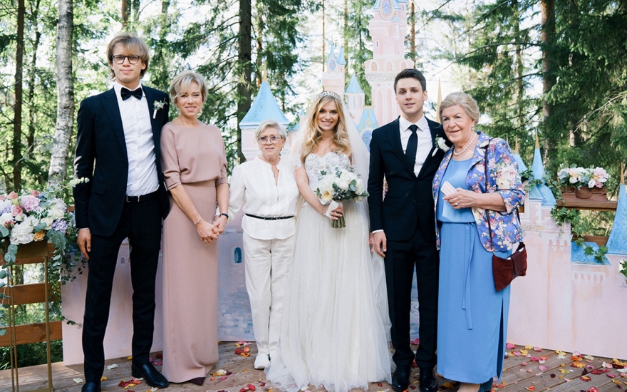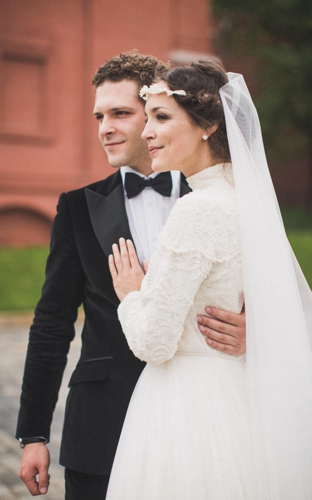 «Татьяна Валентиновна в миг перевернула всю мою жизнь, — объясняла Аня. — С первого дня общения я поняла, что попала в надежные руки!». Итогом предсвадебной коллаборации стало корсетированное платье с открытыми плечами и плиссированной легкой юбкой, которое дополнила длинная фата и бриллиантовые серьги-шандельеры.