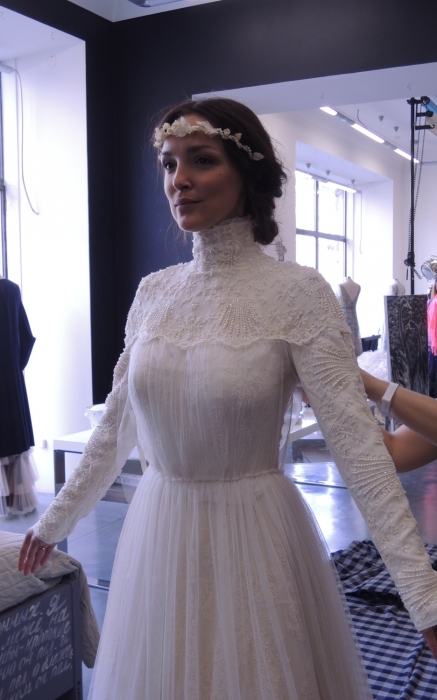22-летняя внучка Алисы Фрейндлих Анна Тарасова сыграла свадьбу с актером Алекссеем Мышинским в этом году — мы были первыми, кто узнал, что подвенечное платье девушке сшила Татьяна Парфенова. До знакомства с дизайнером Анна пыталась найти наряд принцессы в салонах Санкт-Петербурга, но каждый раз выбегала оттуда в панике. Банты, рюши и атласные ленты никак не сочетались с представлениями невесты о красоте — ей хотелось приталенное платье в пол, которое бы отвечало стилистике торжества с розовой мини-версией замка из Диснейленда.