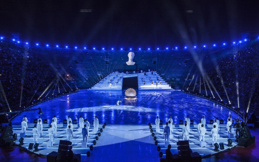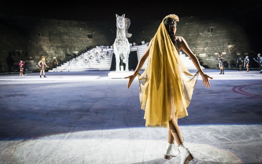 В Вероне состоялось ледовое шоу «Легенда о красоте», которое ежегодно устраивает бельевой бренд Intimissimi. Помимо олимпийских чемпионов, на арене, построенной в 1 веке нашей эры, собрались Ирина Шейк, Кэти Холмс, Яна Рудковская, Ляйсан Утяшева, Дарья Малыгина, Юлия Топольницкая, Елена Темникова, Соня Есьман и Кьяра Ферраньи, которая в этом году сделала костюмы для фигуристов. Они сыграли роли Афродиты, Венеры, Елены Троянской, Церцеи и Медузы, но были одеты не в древнегреческие туники и хитоны, а в кружевные бралетты, ассиметричные платья, плиссированные юбки и декольтированные топы.