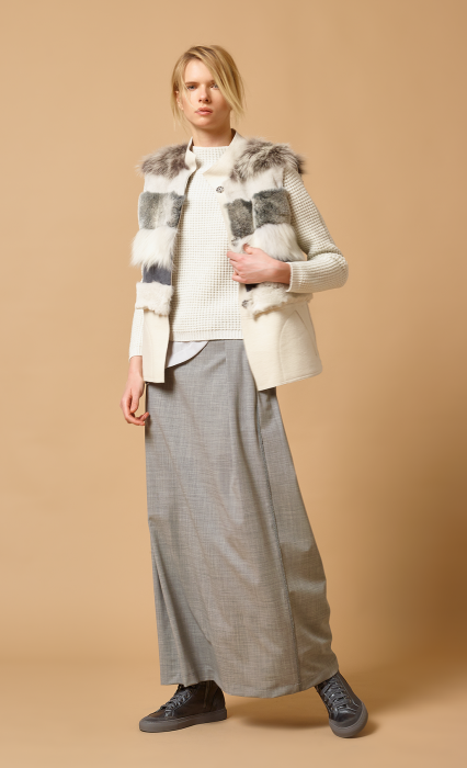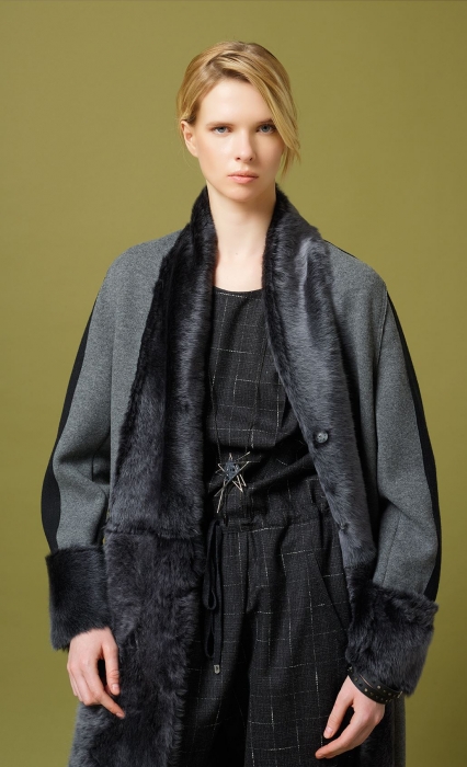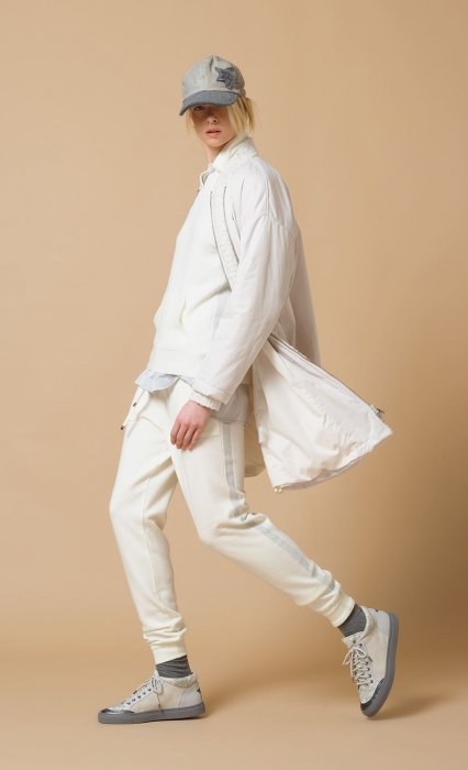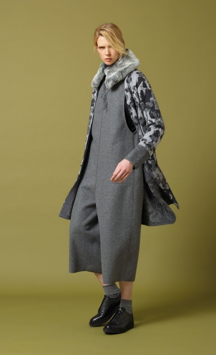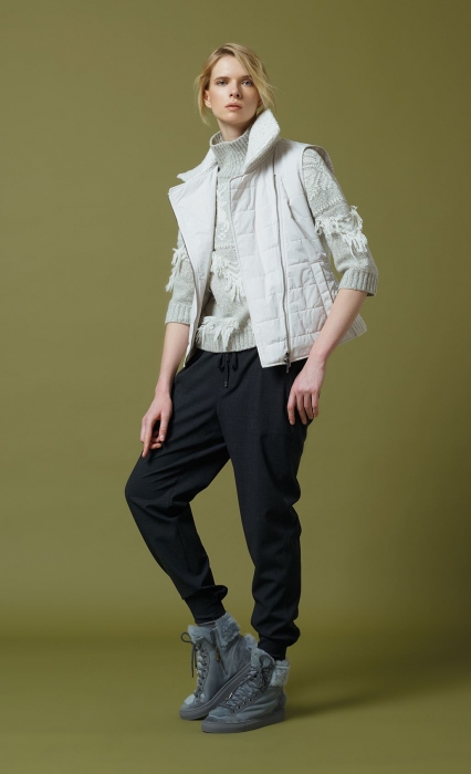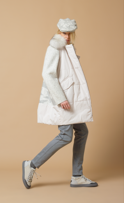 В ней мы смешали традиционные ткани с мехом и овчиной. Это новый способ омолодить женщину, которая не любит шубы в пол, но при этом хочет иметь на одежде меховые элементы. С этого сезона мы также начали использовать кристаллы Swarovski — чтобы прикрепить их к мягким материалам, придумали специальную тонкую пленку. Из страз даже сделана наша фирменная звездочка, которая украшает все вещи — от свитеров до утепленных кроссовок.