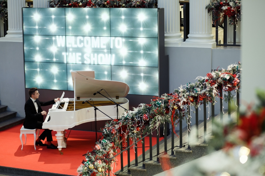 Напомним, Welcome to the Show — большая программа праздничных событий в ДЛТ. По пятницам с 19:00 до 21:00 на главной новогодней сцене ДЛТ проходят концерты джаз-бэнда Санкт-Петербургской филармонии джазовой музыки, официального оркестра Сочи-2014, которым управляет Народный артист России Давид Голощекин. А по воскресеньям с 19:00 до 21:00 для гостей играет пианист-виртуоз Станислав Чигадаев, сотрудничавший с Андреа Бочелли, Найджелом Кеннеди и Василием Герелло.