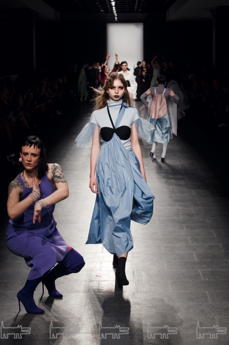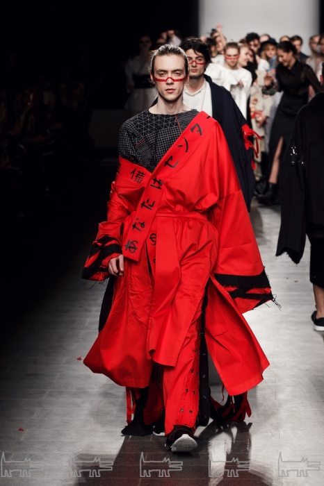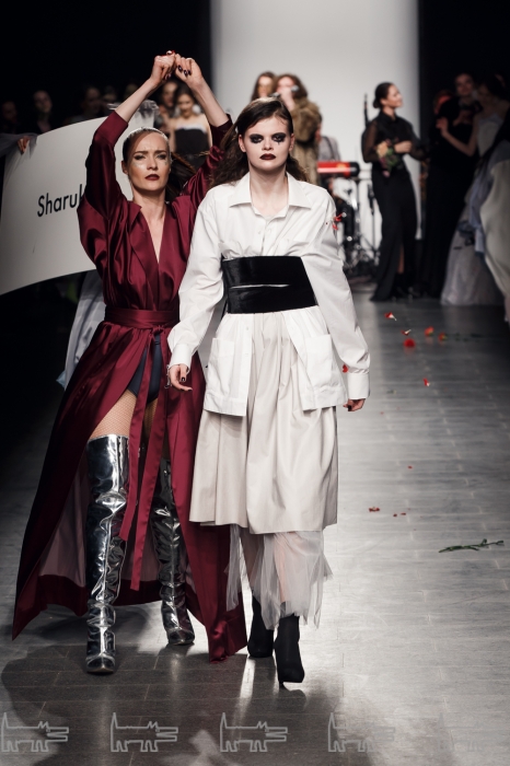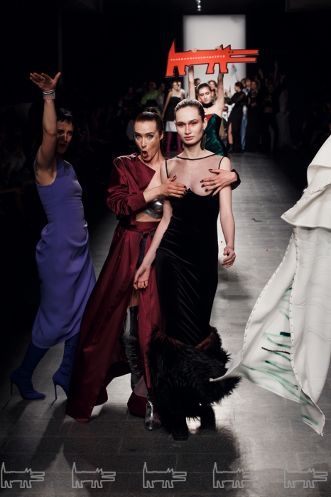 Для показа, прошедшего в формате фэшн-баттла, мы собрали звездный модельный состав: работы новых русских брендов представили наши любимые герои — солистка группы IOWA Катя Иванчикова, каллиграф Покрас Лампас, художница и блогер-миллионник Елена Шейдлина, актриса Полина Сидихина, форвард баскетбольного клуба «Зенит» Дрю Гордон, актер Александринского театра Тихон Жизневский, совладелец маркетингового агентства Bad Mamas Оскар Ренкель, продюсер «Собака.ru» Кристина Шибаева, а также певицы Шура Кузнецова и Мария Дризик. Они дефилировали под аранжировки групп Junkyard Storytellaz и Bhima U, в сопровождении танцовщиков команды House Of Bonchinche — дико модное шоу придумал режиссер-постановщик Сергей Луковский, а стилизовал — ударник фэшн-труда Cake Moster.