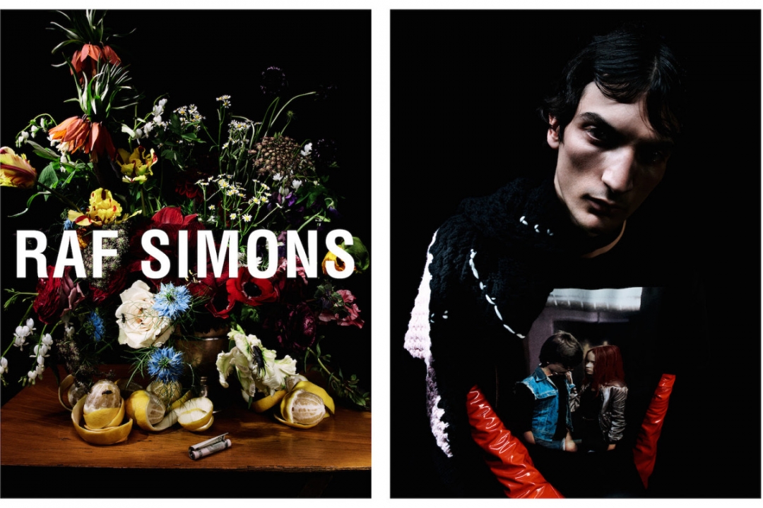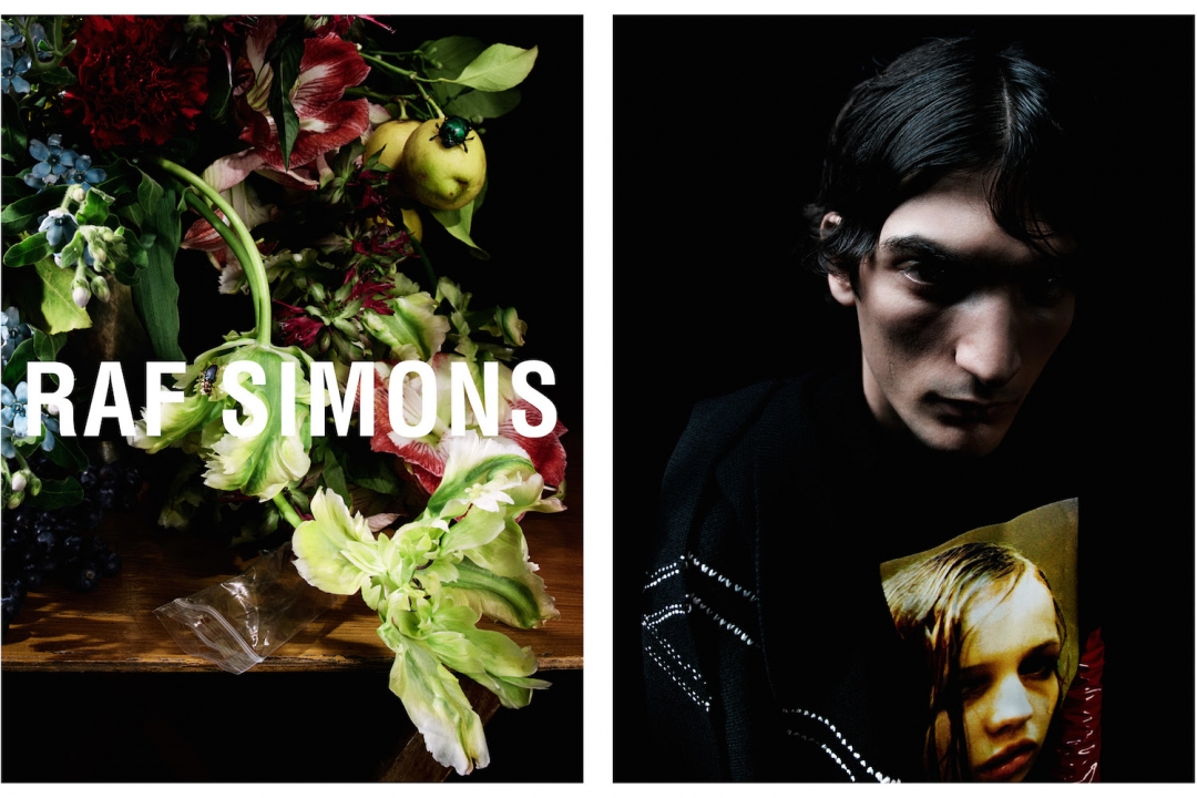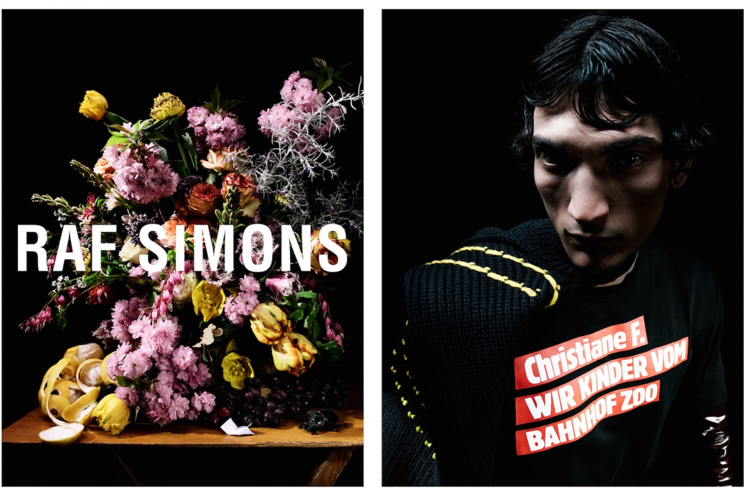 Лучший дизайнер женской одежды по версии совета CFDA Раф Симонс показал кампейн коллекции именного бренда. На коллажах объединились пышные цветочные композиции, очищенные фрукты, пластиковые пакеты, долларовые купюры и самокрутки, а также одежда с отсылками к фильму 1981 года «Я Кристина». Сюжет о берлинской девочке с героиновой зависимостью также лег в мудборд осенне-зимнего показа Raf Simons, где модели в буквальном смысле слова ходили по накрытому столу.