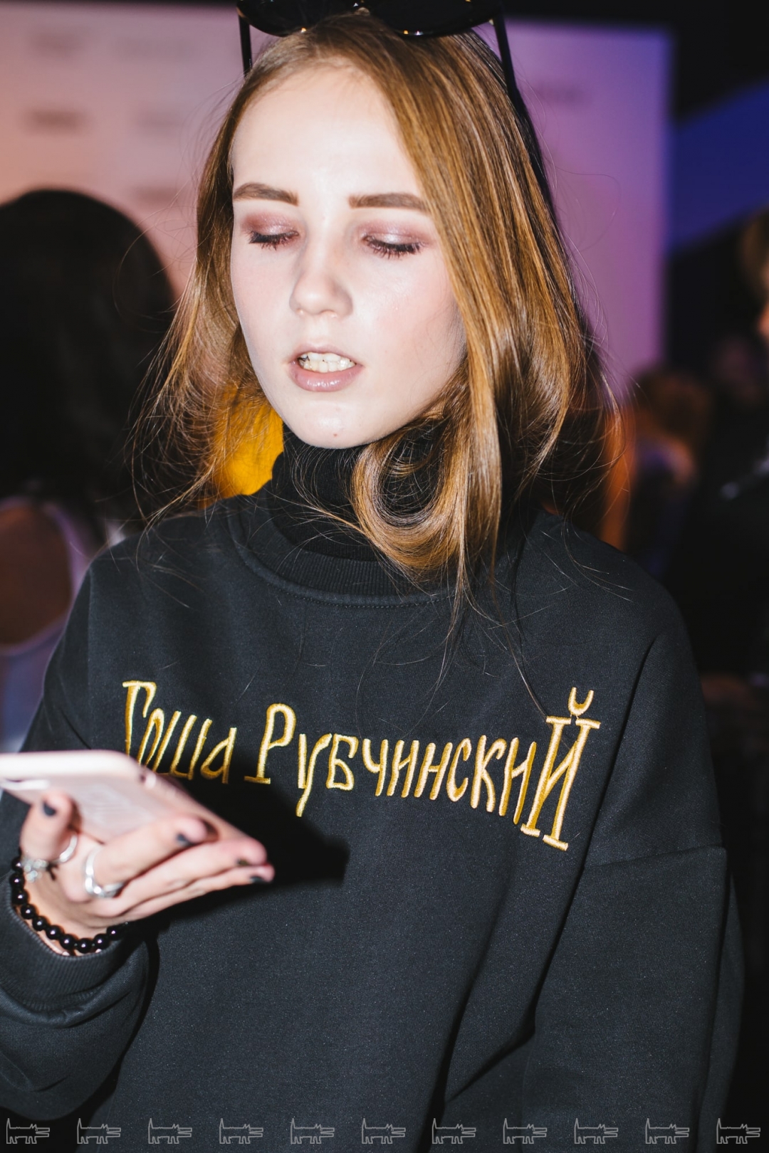 Среди общего с московскими модниками у петербуржцев — безграничная любовь к одежде от Гоши Рубчинского. Но если первые выгуливают в свет вещи из его осенне-зимней (последней) коллекции — свитеры «Друг» и «Враг» и околофутбольные шарфы «Россия», то вторые предпочитают вневременную брендированную классику. К свитшотам с надписью Gosha Rubchiskiy прилагаются узкие очки и прозрачная кросс-боди Places + Faces, купленная на хайпбистской платформе Grailed. Главное — чтобы в сумке было видно все содержимое — от студенческого билета до наушников AirPods.