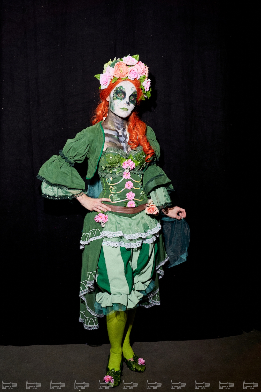 В отличие от июньского «Старкона», на котором косплеили аниме-персонажей, героев вселенной Marvel (ну, куда же без них) и австрийскую дрэг-квин Кончиту Вурст, этот объединил российских любителей мексиканского праздника Día de los Muertos («День мертвых»). Нам он известен по оскароносному мультфильму Ли Анкрича «Тайны Коко», поэтому мы ожидали увидеть женские скелеты, увенчанные цветочными ободками, усатых мужчин в сомбреро и пончо или (на крайний случай) Фриду Кало в хоррор-воплощении. Однако в мудборд большинства костюмов вошли египетские боги, персонажи ужастиков, неповторимый Том Харди в роли «Венома» и Майкл Китон в образе «Битлджуса».