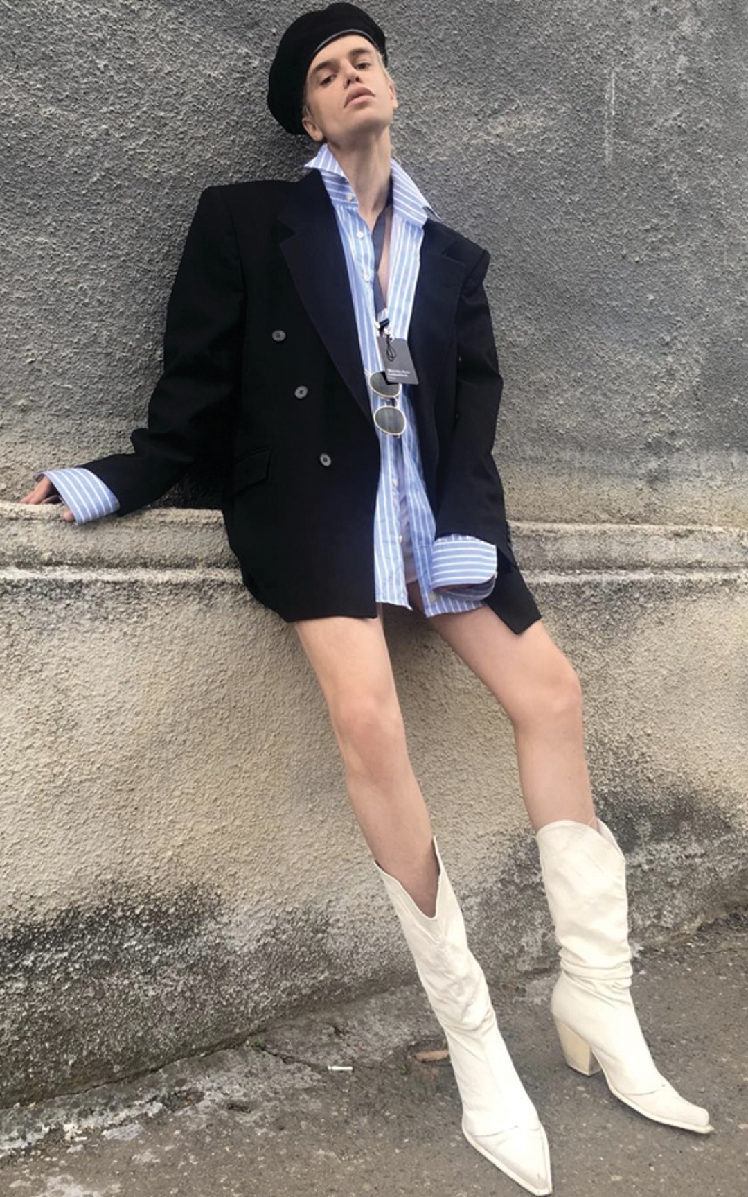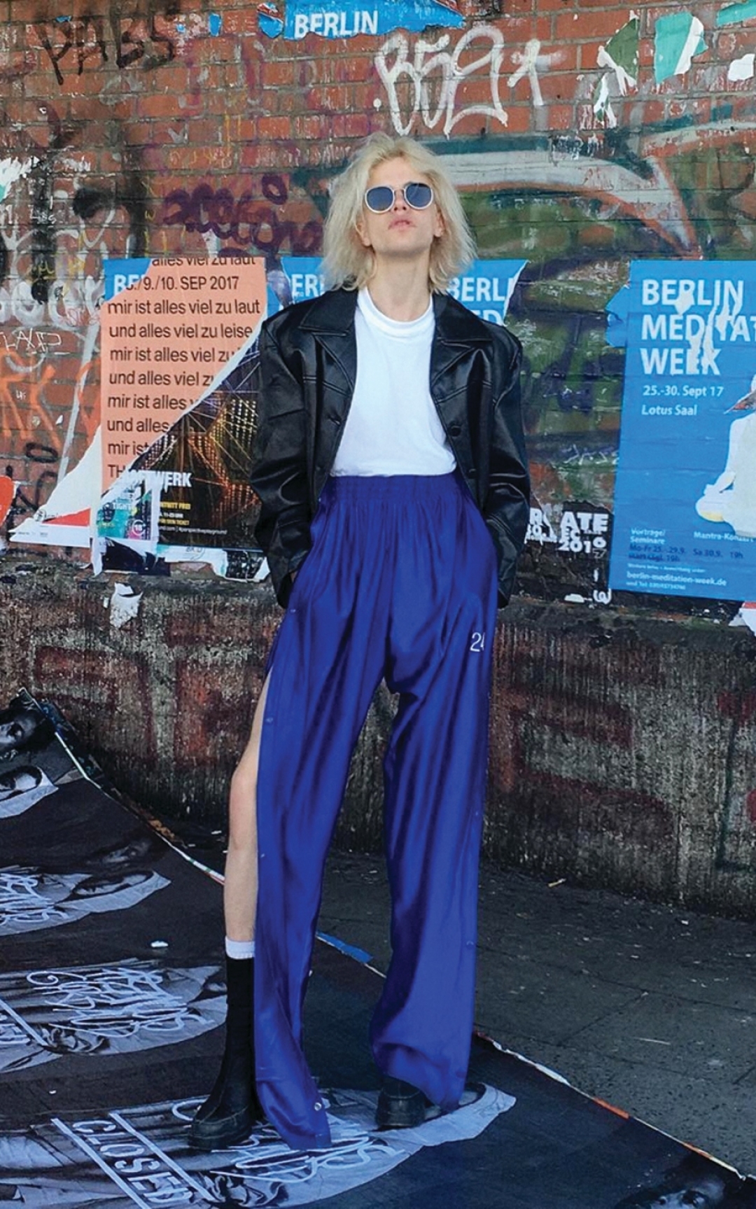 Мы до сих пор не можем понять, что диджей Шаповалов делает лучше: одевается или раздевается, поэтому на всякий случай занесли его в отряд бодипозитивистов. Прозрачные блузы M_U_R он миксует с разрезанными вдоль брючин спортивными штанами с Уделки, а килты — с майками-сетками из 1990-х: free the nipples!
