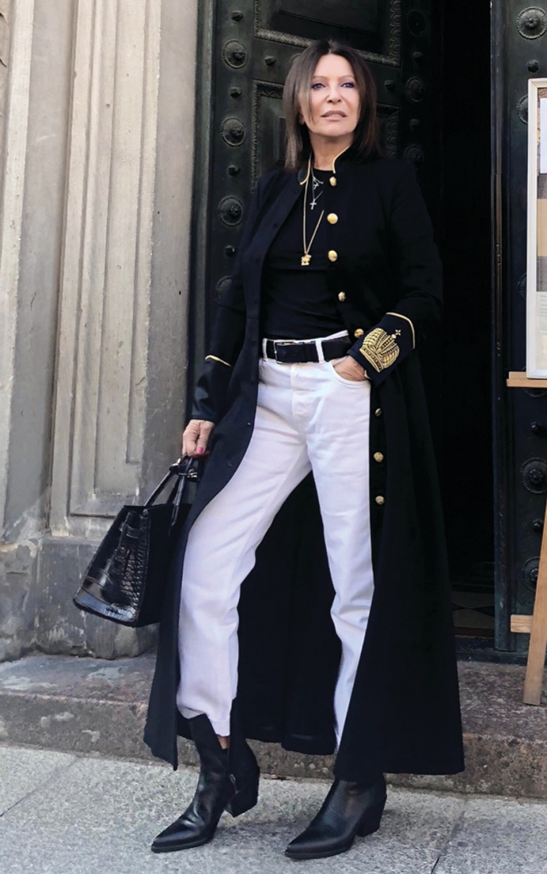 За луками писателя и искусствоведа мы и еще 73 тысячи подписчиков инстаграма следим как за остросюжетными сериалами Жан-Марка Валле: неизвестно, что будет за поворотом. Во-первых, образы никогда не повторяются. Во-вторых, мы ломаем голову, как можно настолько виртуозно менять стили. Раз — Ирина в трениках Gosha Rubchinskiy и кожаном пилоте Gucci идет по парижскому бульвару, два — и она в платье в пол от Alina German на ужине в Петербурге, три — в тотал-луке от Chanel шуршит листьями в осеннем парке. Пожалуй, ей нет равных в обыгрывании аксессуаров: и крокодиловая Birkin, и шапка-ушанка в ее интерпретации одинаково круты.