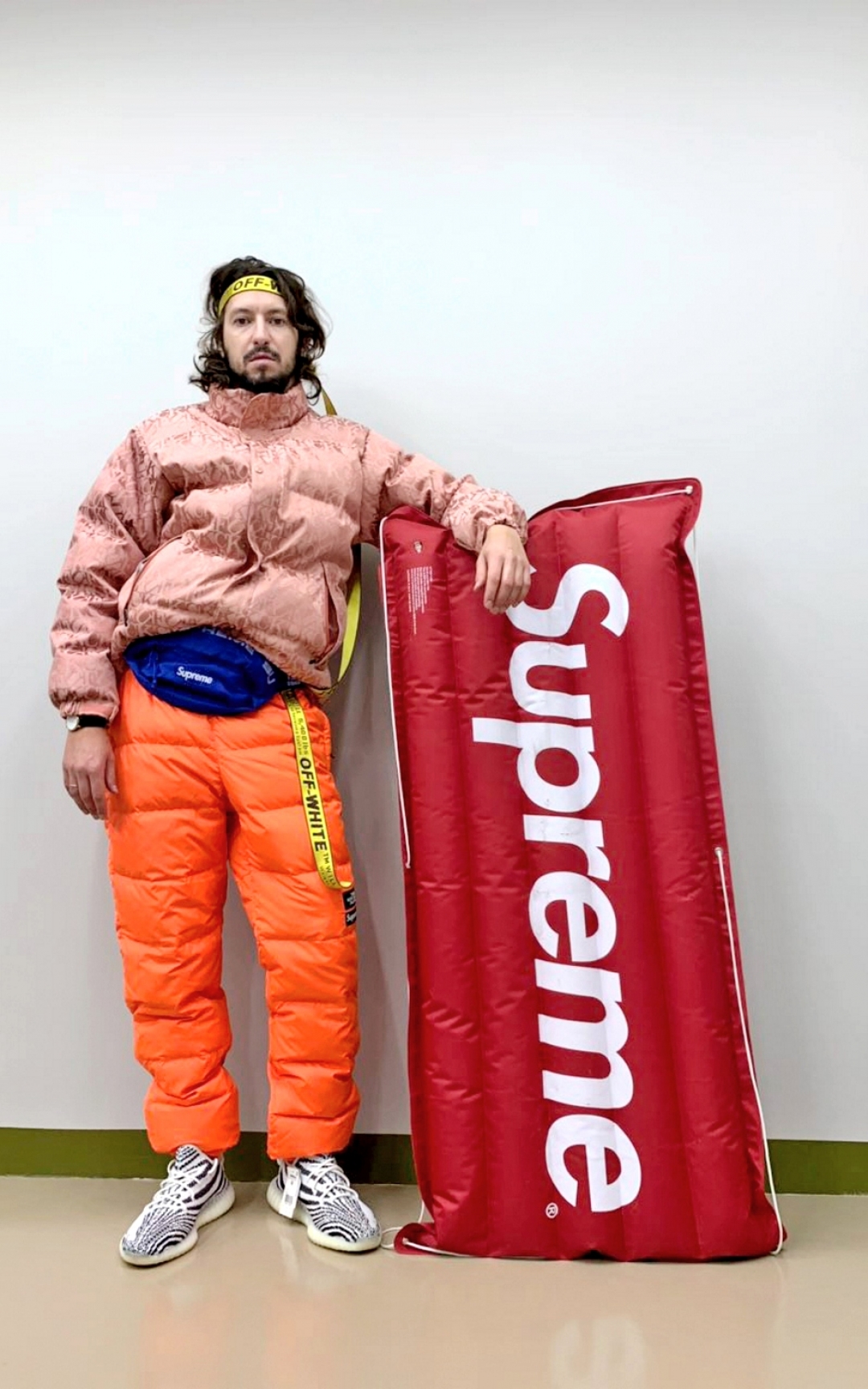 Почему музыкант, продюсер и креативный продюсер может надеть абажур от люстры, перепоясаться сумкой Chanel поверх желтого дождевика с логотипом «Новой Голландии» и выглядеть круто? Потому что он обладает редким, нет, редчайшим для петербуржца качеством: самоиронией. С ней он попал в один из главных трендов уходящего года — луки-мемы: гигантские пуховики, ugly shoes, странные предметы, превращенные в одежду. Хотите так же? Изучите профиль @itsmaysmemes и дерзайте.