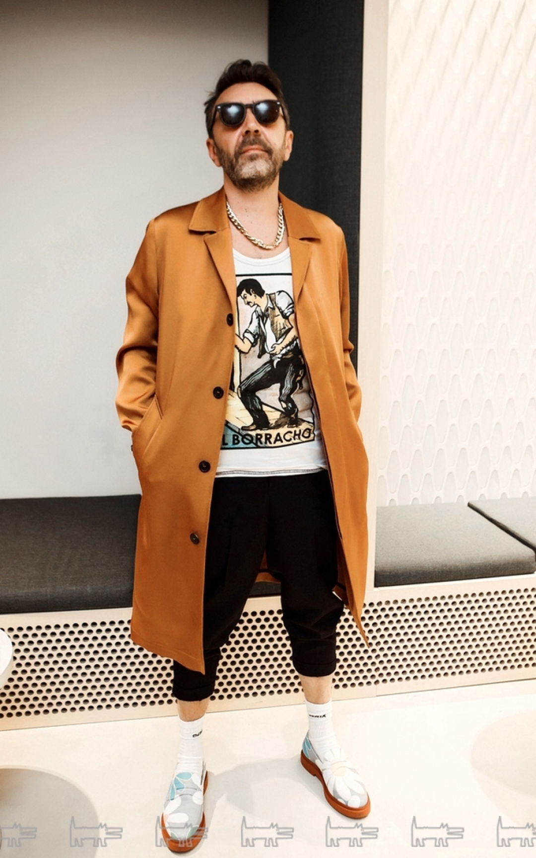 Видимо, Петербург каким-то магическим образом заточен на то, чтобы производить «наших все». Сергей Владимирович задает жару не только стадионно-музыкального, но и культуры быта. Нечто цыганское, щепотка классики, раздолбайский панк, рок наотмашь — и вот перед нами лучший образец с Pitti Uomo на берегах Невы, подражать которому хотели бы многие, но залихватства не хватает пока ни у кого.