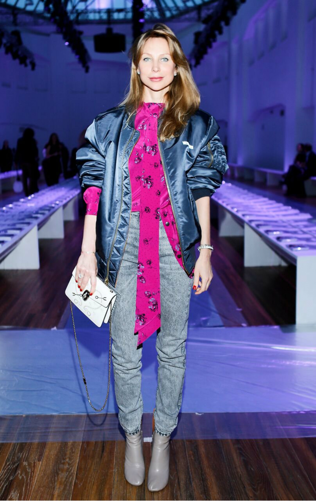 Даже если предприниматель, психолог и мать четырех детей выходит в джинсах и бомбере, то все равно выглядит нарядно — такая органика. Но лучше всего на ней смотрятся коллекции ее подруг — сияющие комбинации JM Studio и ослепительные платья Alina German Design.
