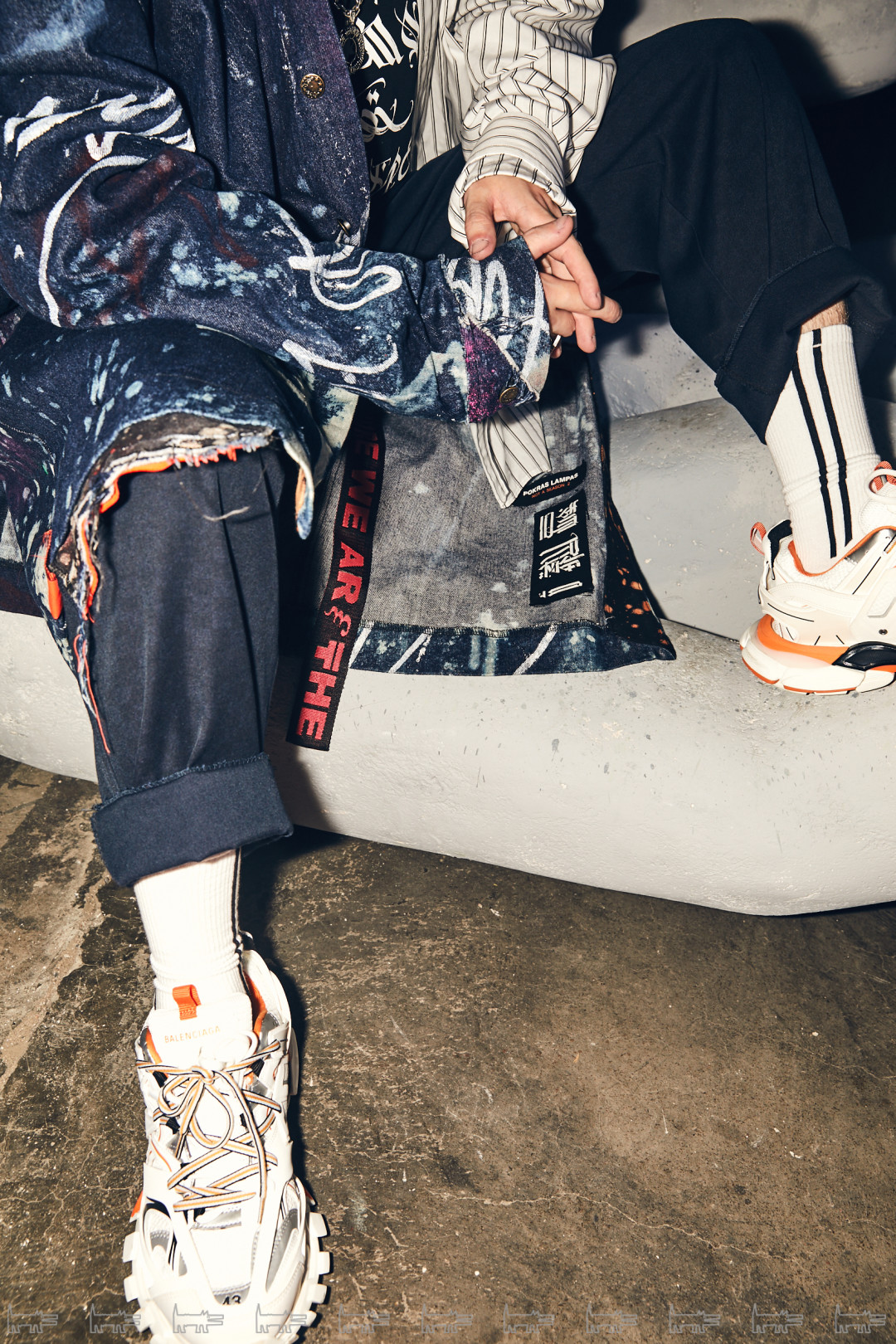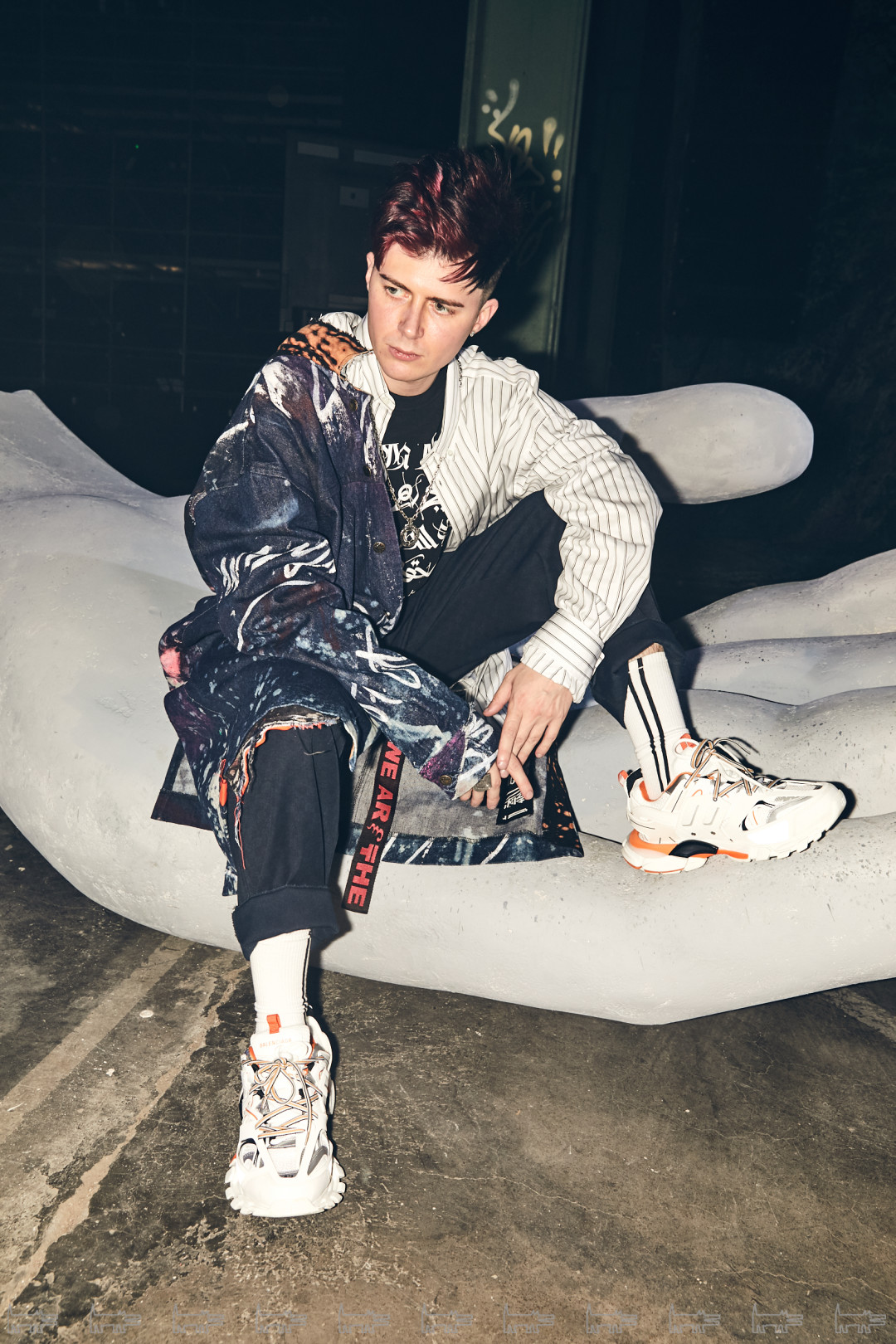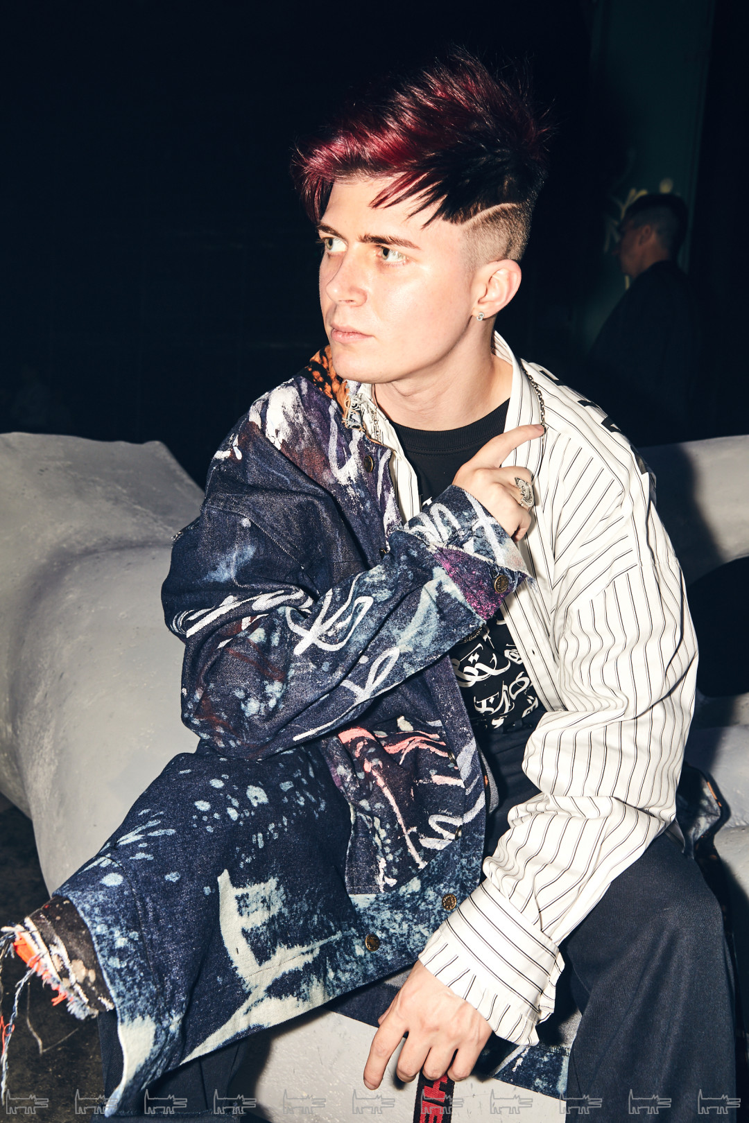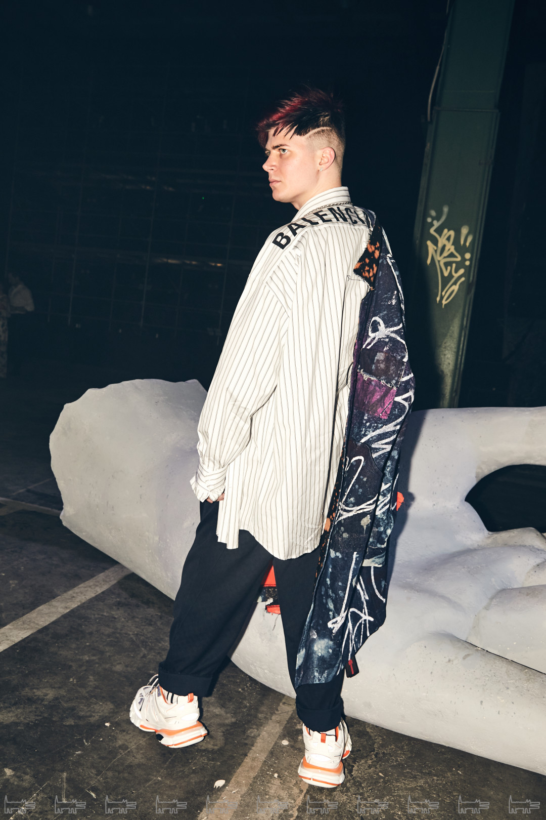 На Покрасе: куртка Pokras Lampas Official X DLT, футболка и украшения Pokras Lampas Official, рубашка и кроссовки Balenciaga, брюки Jean Paul Gaultier