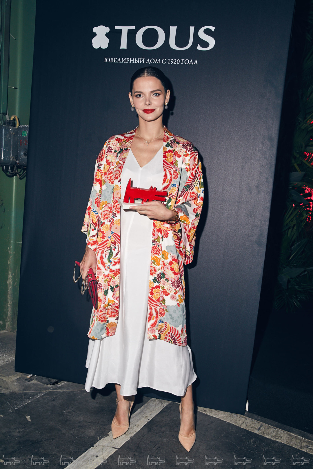 На Елизавете: халат Maje, платье Jil Sander, туфли Gianvitto Rossi, сумка и украшения TOUS