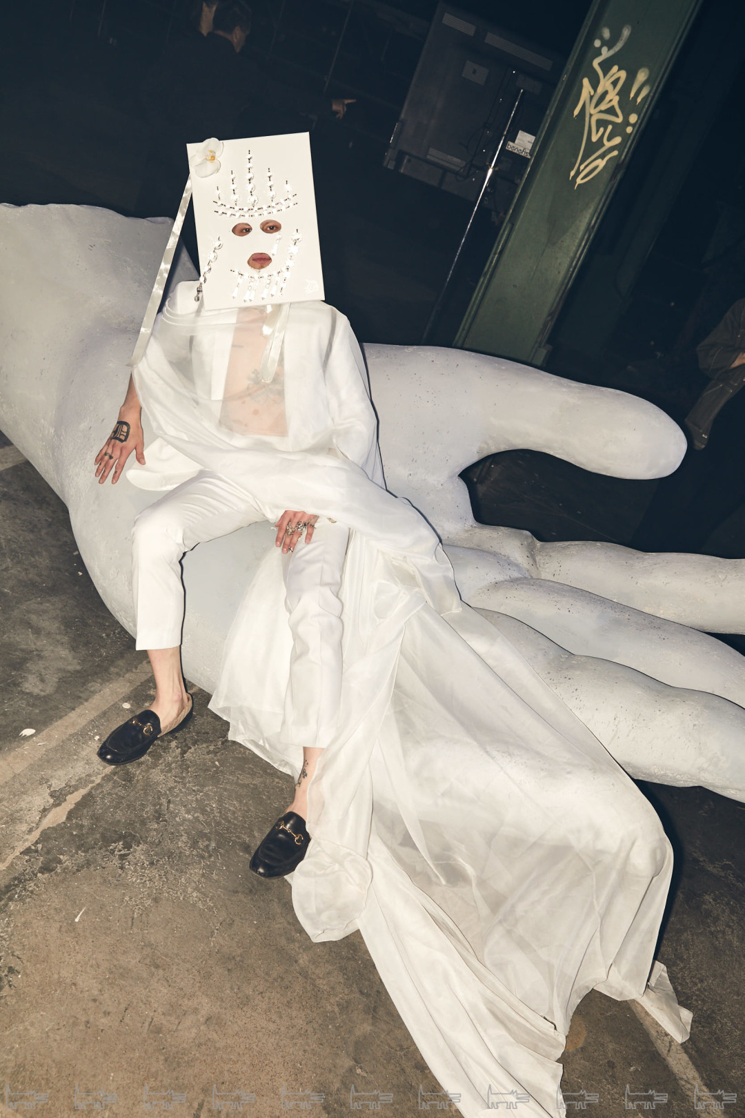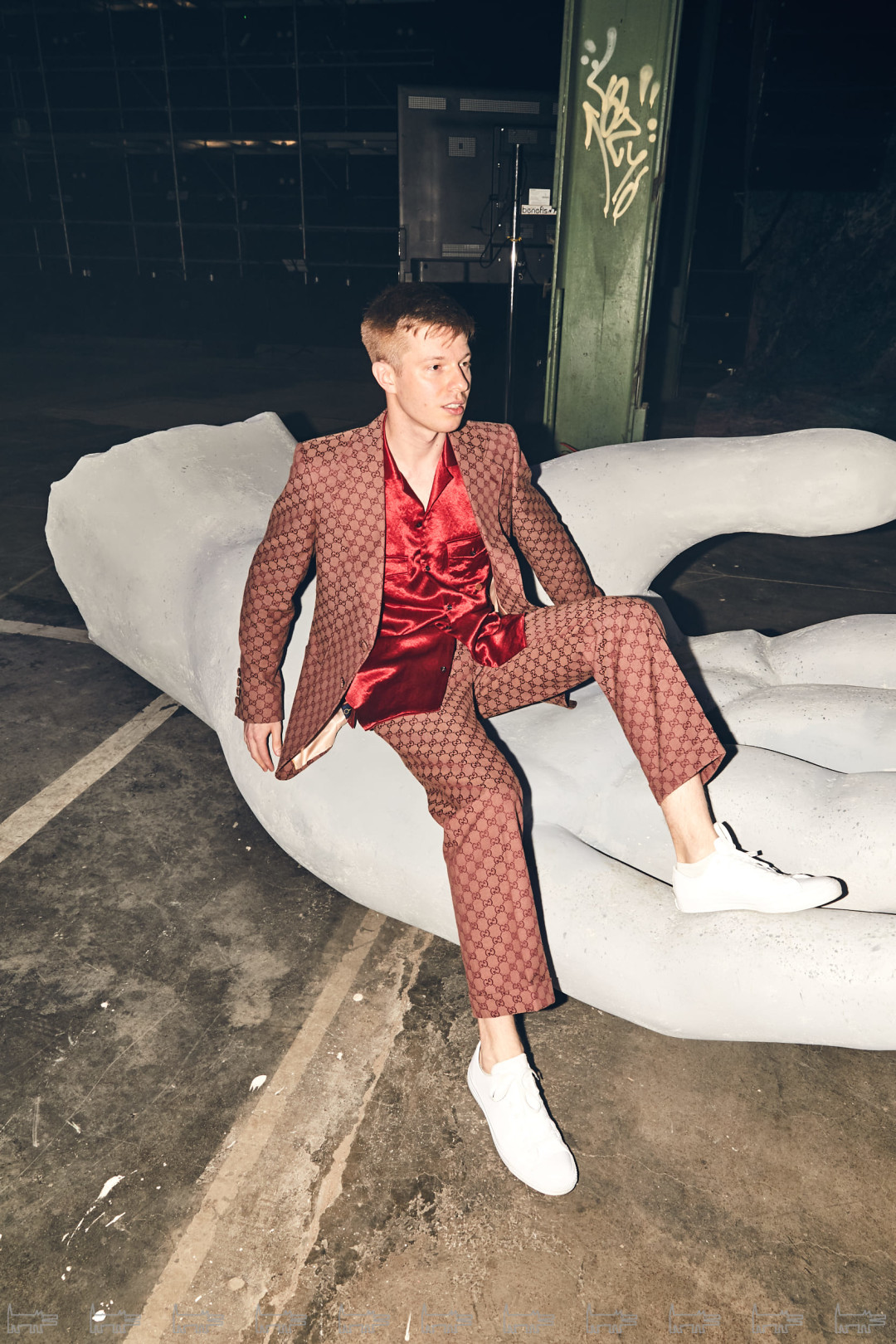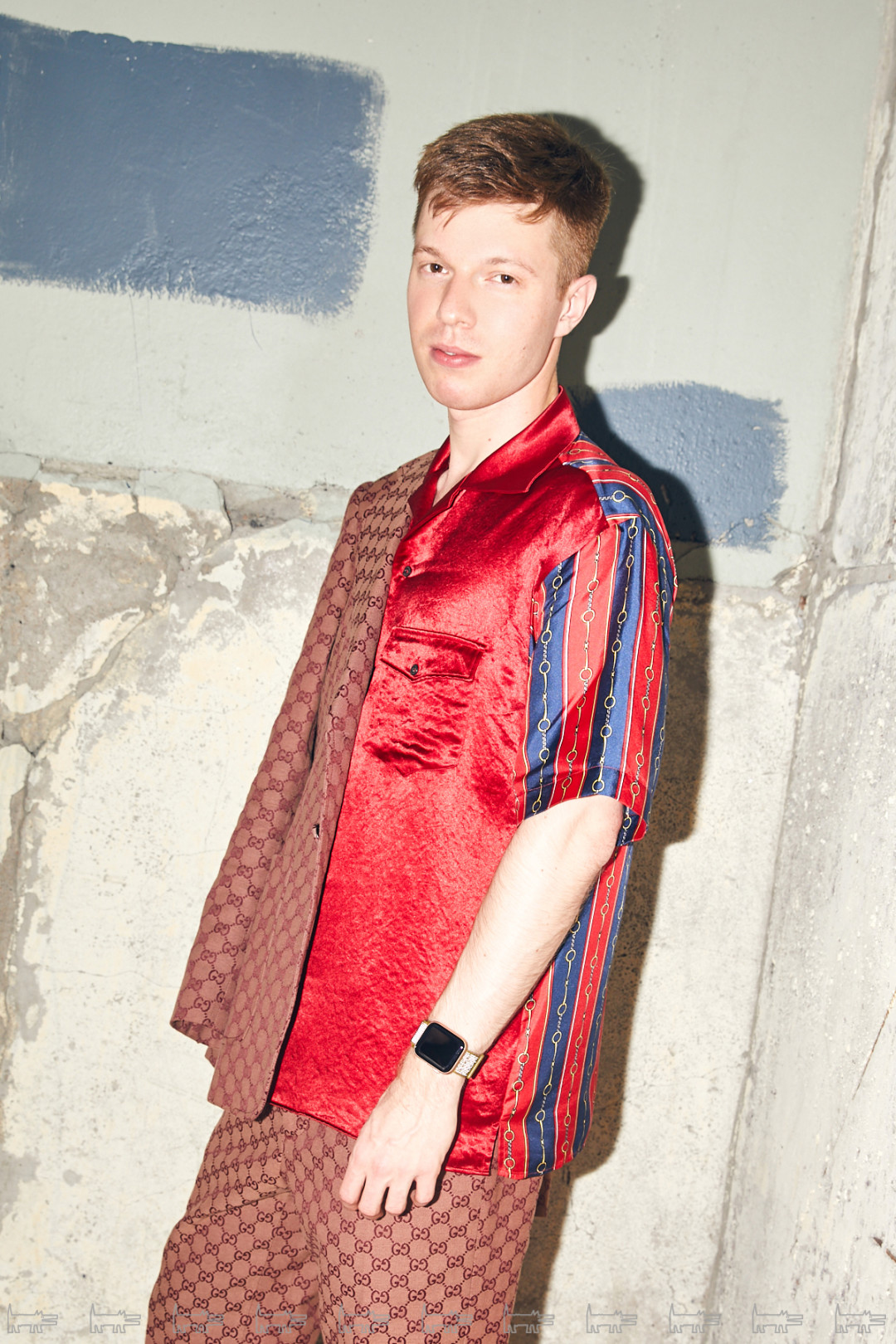 На Дмитрии: костюм, сшитый на заказ, маска и браслеты собственного производства, ботинки Gucci