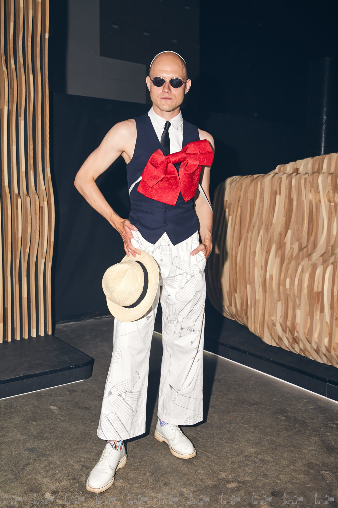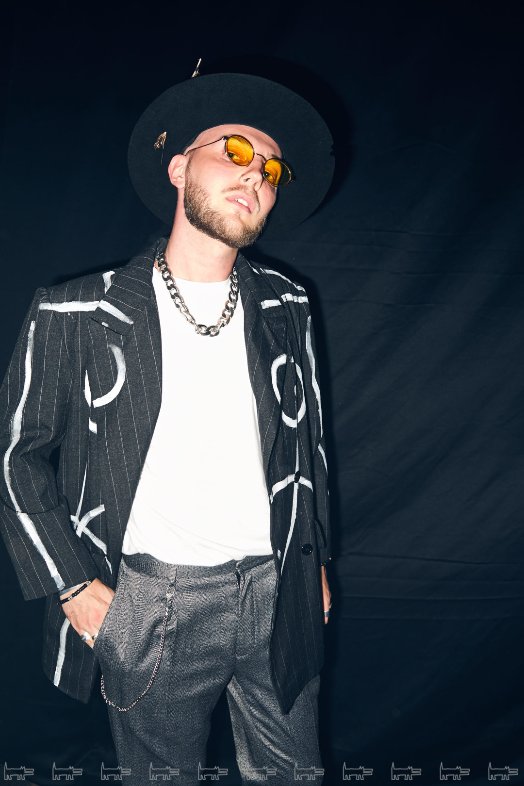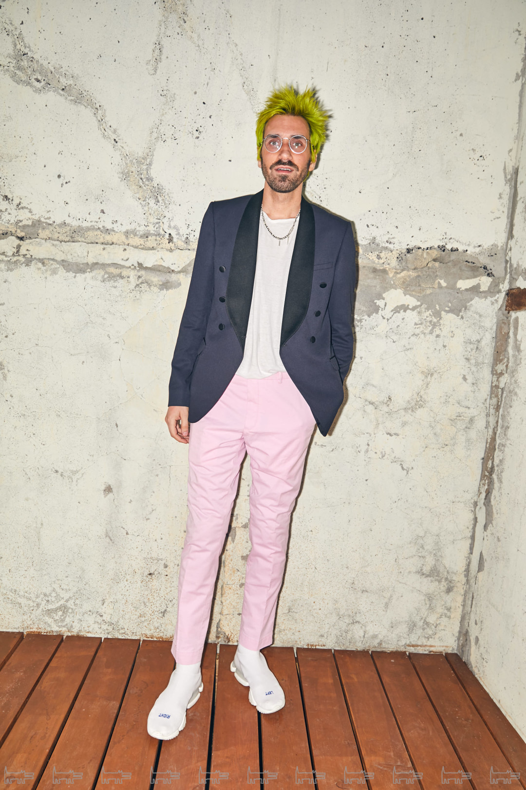 На Дмитрии: костюм, сшитый на заказ, маска и браслеты собственного производства, ботинки Gucci