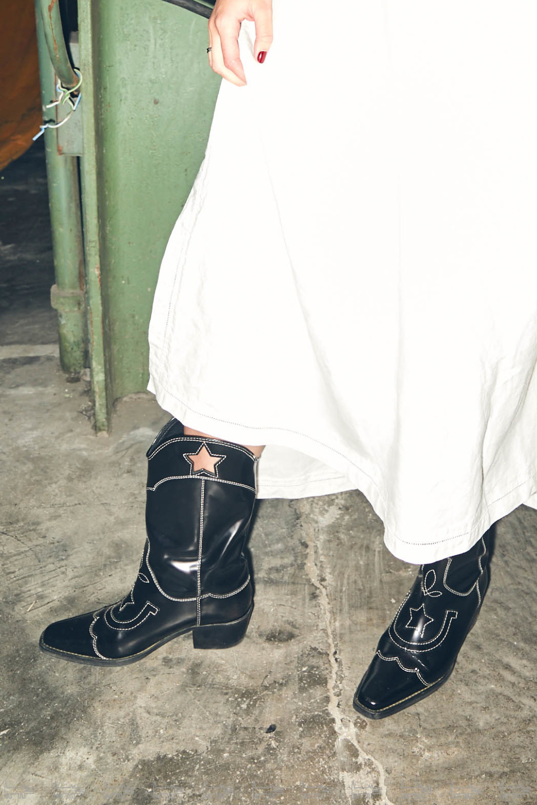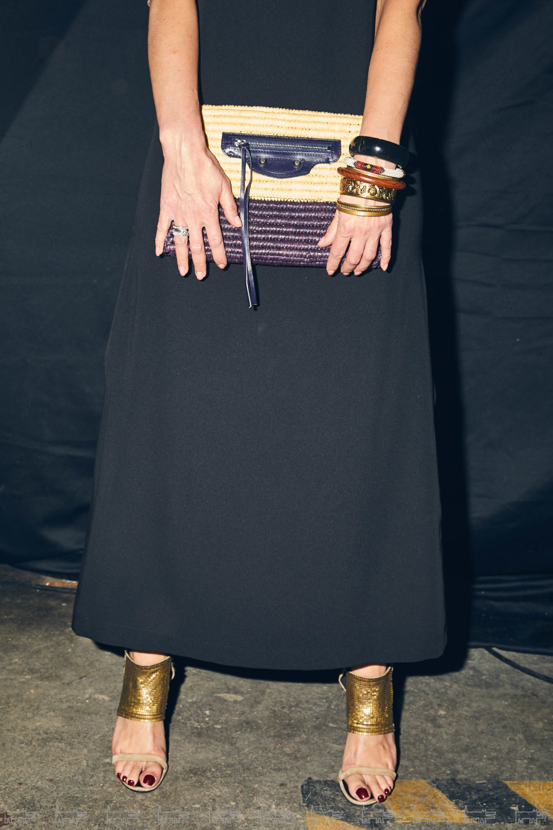 Ксения: платье H&M X Balmain, серьги Givenchy Vintage, брошь из The Met, сумка Dior, казаки аргентинского бренда