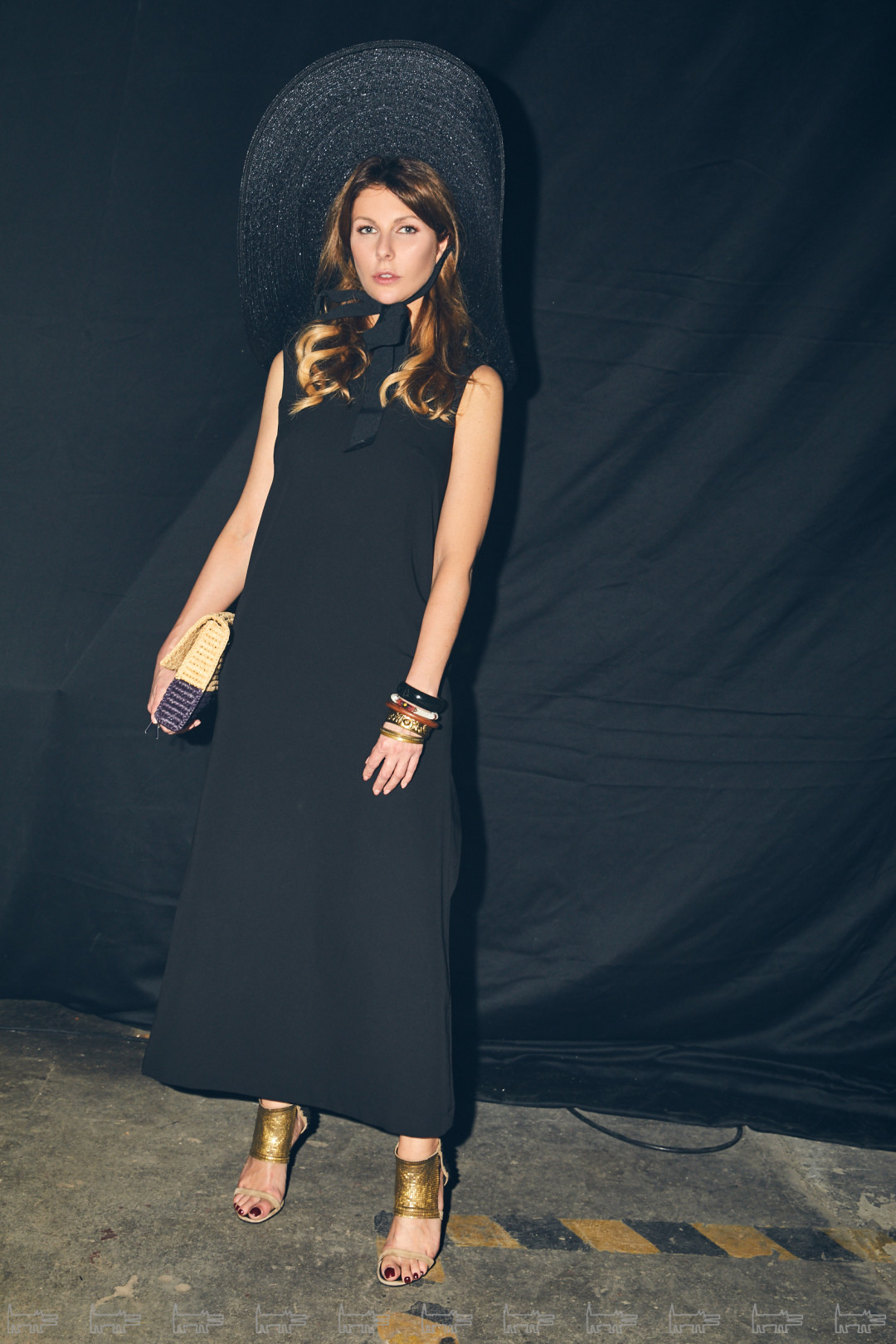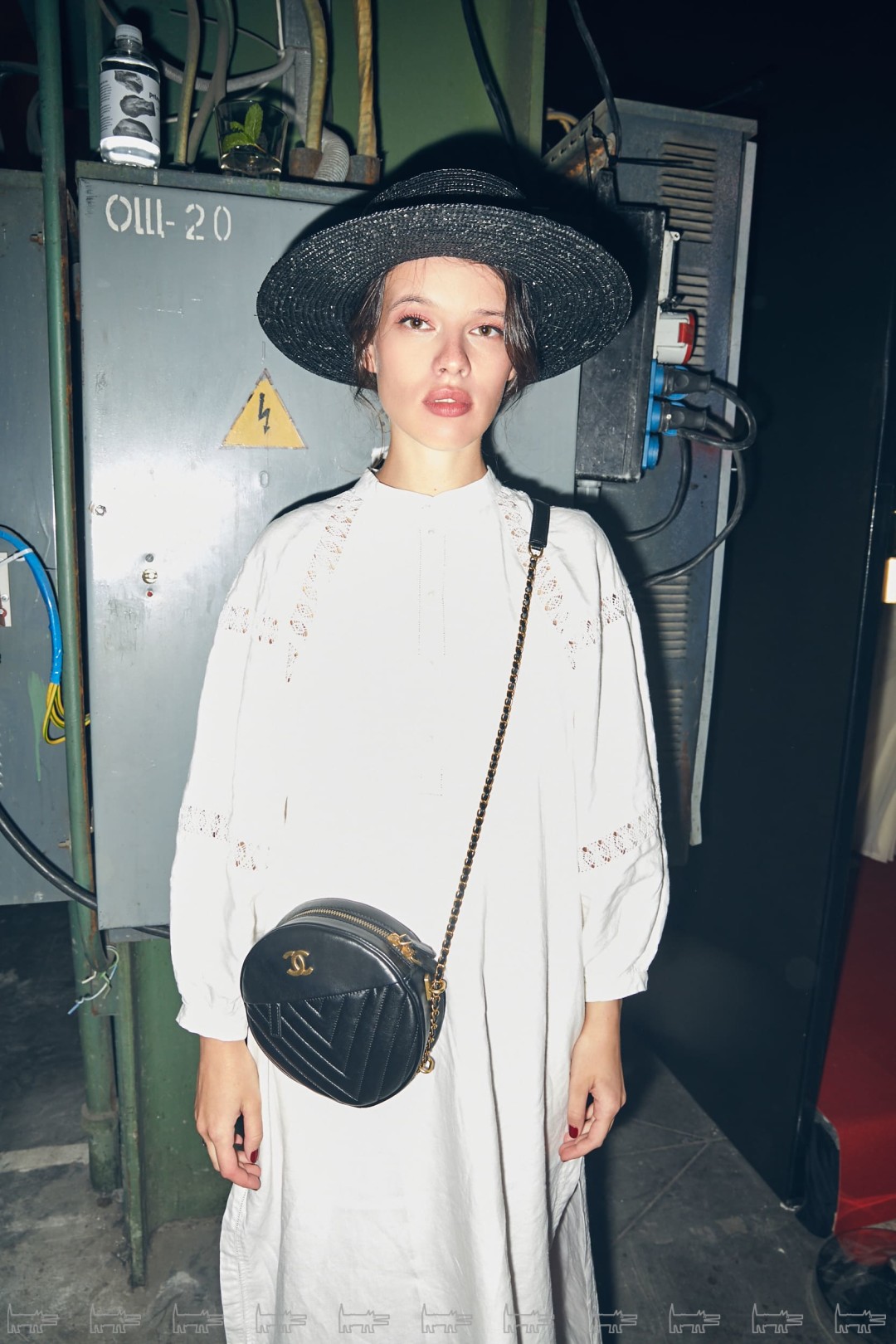 На Евгении: платье от российского дизайнера, босоножки Balmain, сумка Balenciaga, шляпа Annette Görtz, браслеты Dries Van Noten