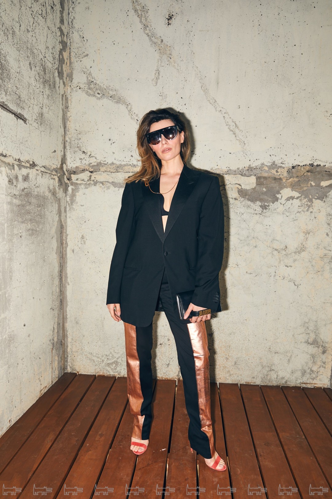 На Соне: костюм Ianis Chamalidy, сумка AllSaints, туфли Zara