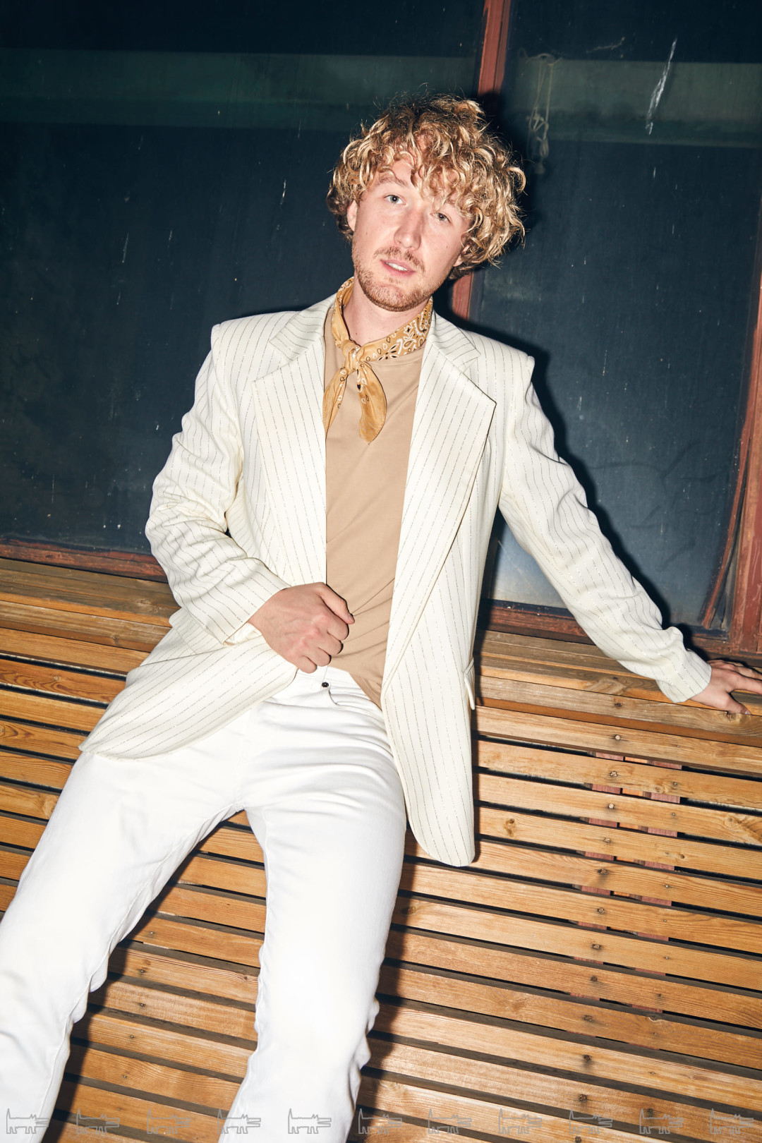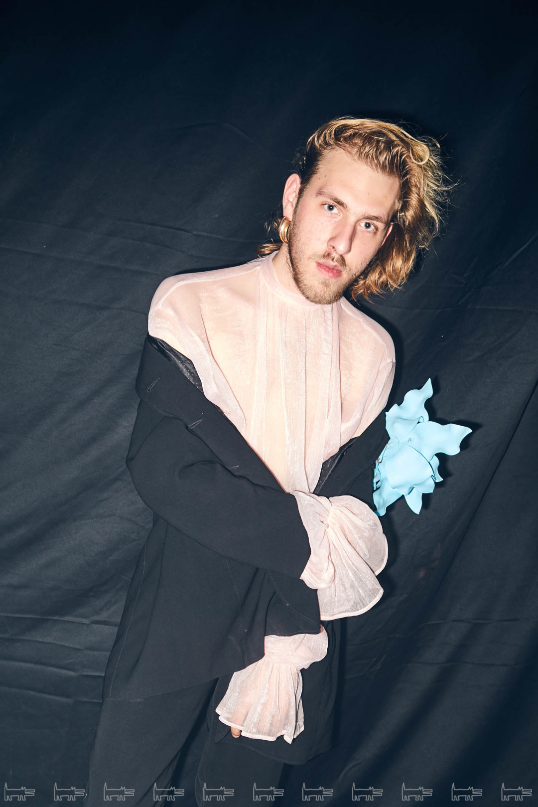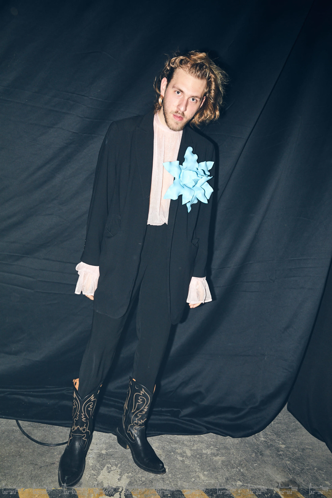 На Сергее: пиджак ASOS, брюки Ralph Lauren, кроссовки Vetements, украшения Maison Margiela