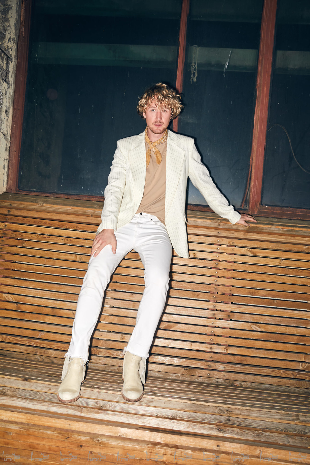 На Юре: смокинг Saint-Tokyo, футболка H&M, казаки Jean Baptiste Rautureau, бандана из рокерского магазина