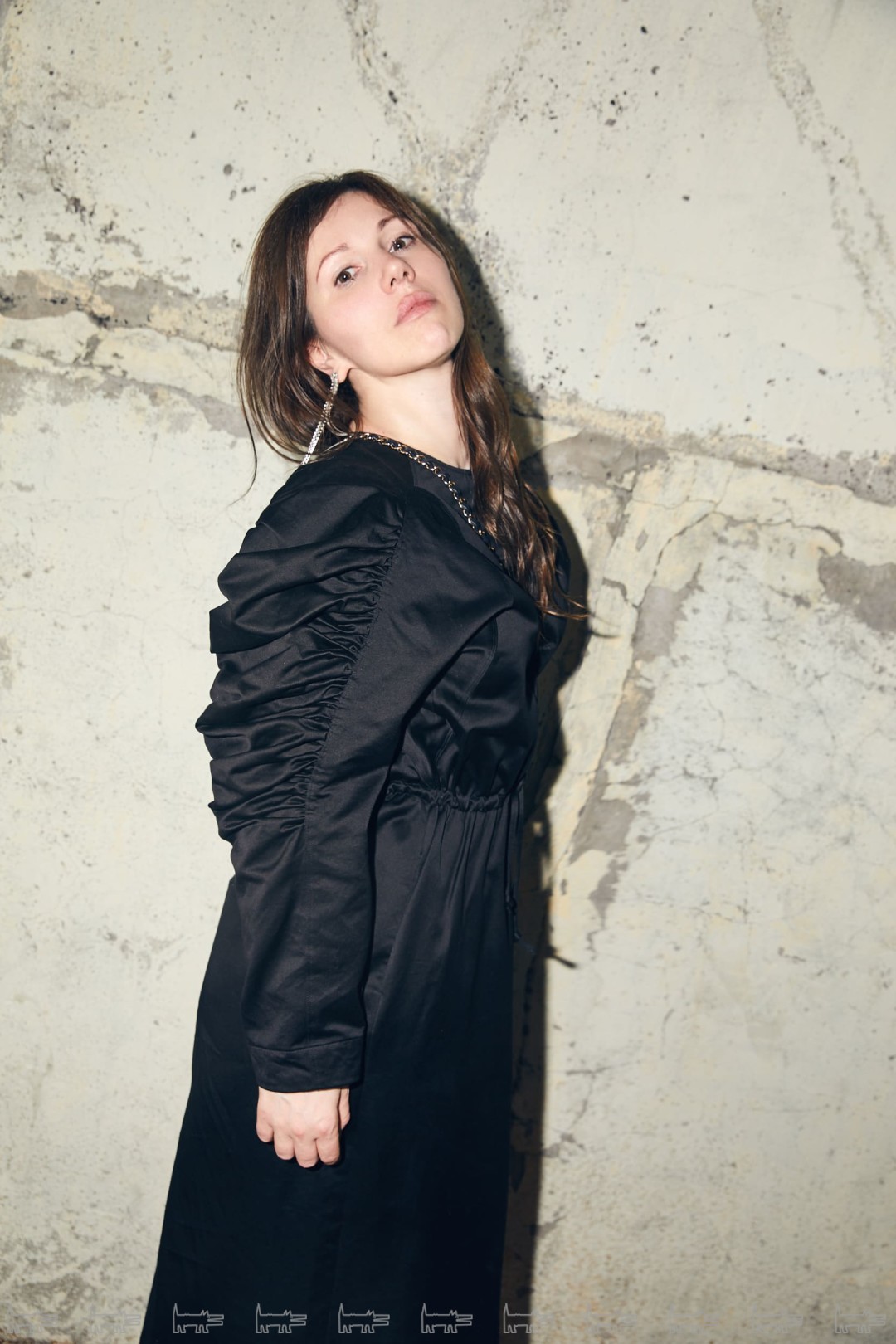 На Марии: платье 404 NOT FOUND, туфли Gianvito Rossi, перчатки Tender & Danderous, сумка винтаж из Франции