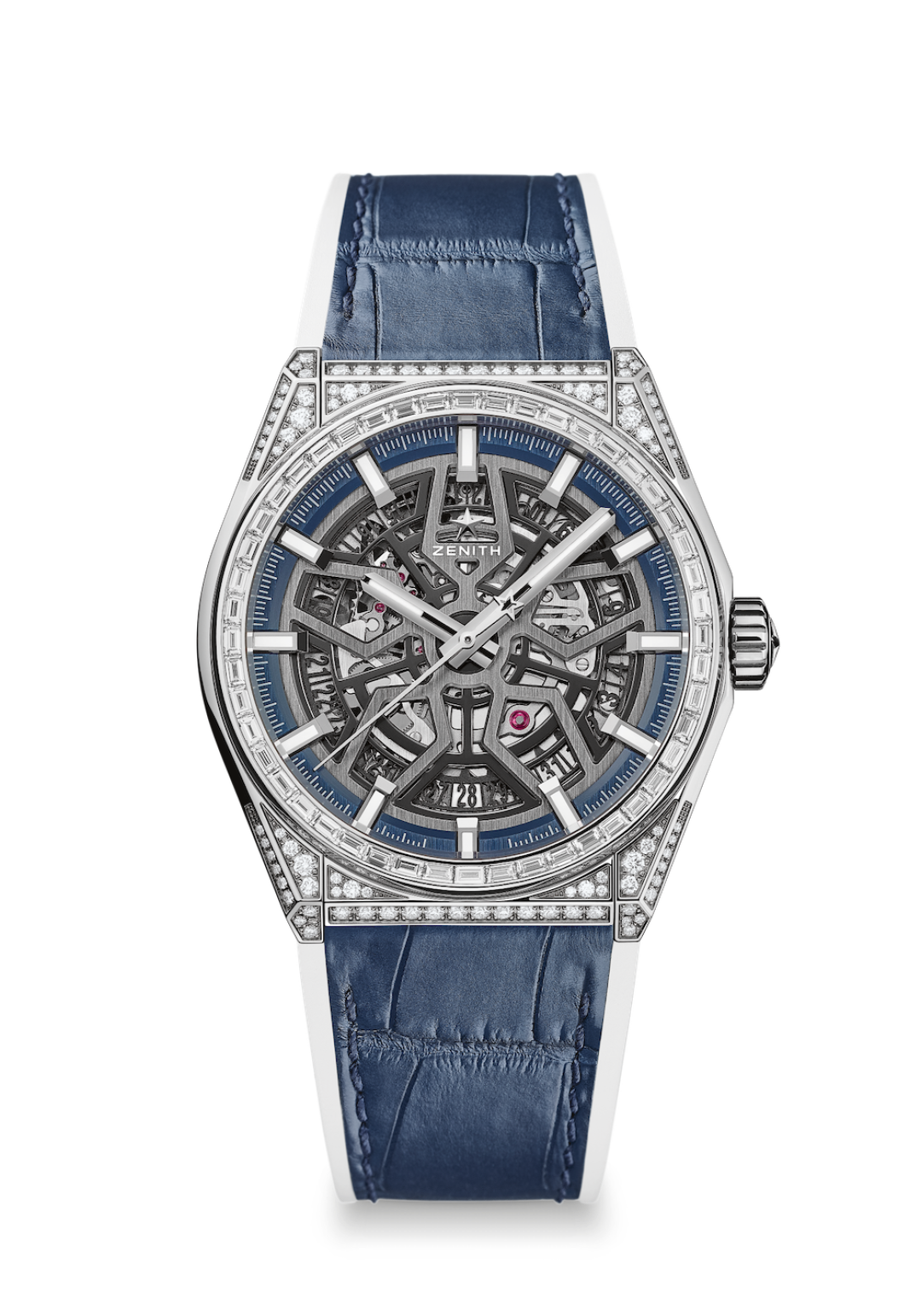 Часы Defy Classic High Jewellery — роскошное, но в то же время сдержанное воплощение авангардной философии Zenith. На безеле и корусе разместились бриллианты. Часовые отметки и стрелки покрыты родием и люминесцентными пигментами. Открытый циферблат с деталью в виде звезды добавляет современной конструкции визуальную глубину. Совершенные пропорции и уникальный циферблат превращают Defy Classic в идеального спутника жизни.