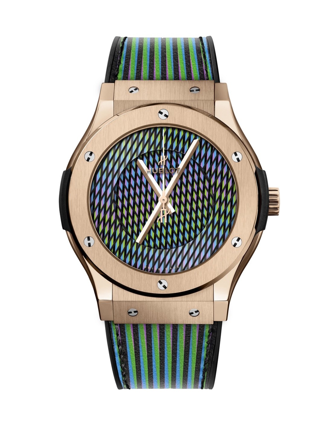Один из главных визуальных мыслителей XX века, гений кинетического искусства — так называли знаменитого франко-венесуэльского художника Карлоса Крус-Диеса, почившего летом этого года на 96-м году жизни. В этом декабре в галерее Espace Expression в Майами компания Hublot представила модель Classic Fusion Cruz-Diez, посвященную художнику.