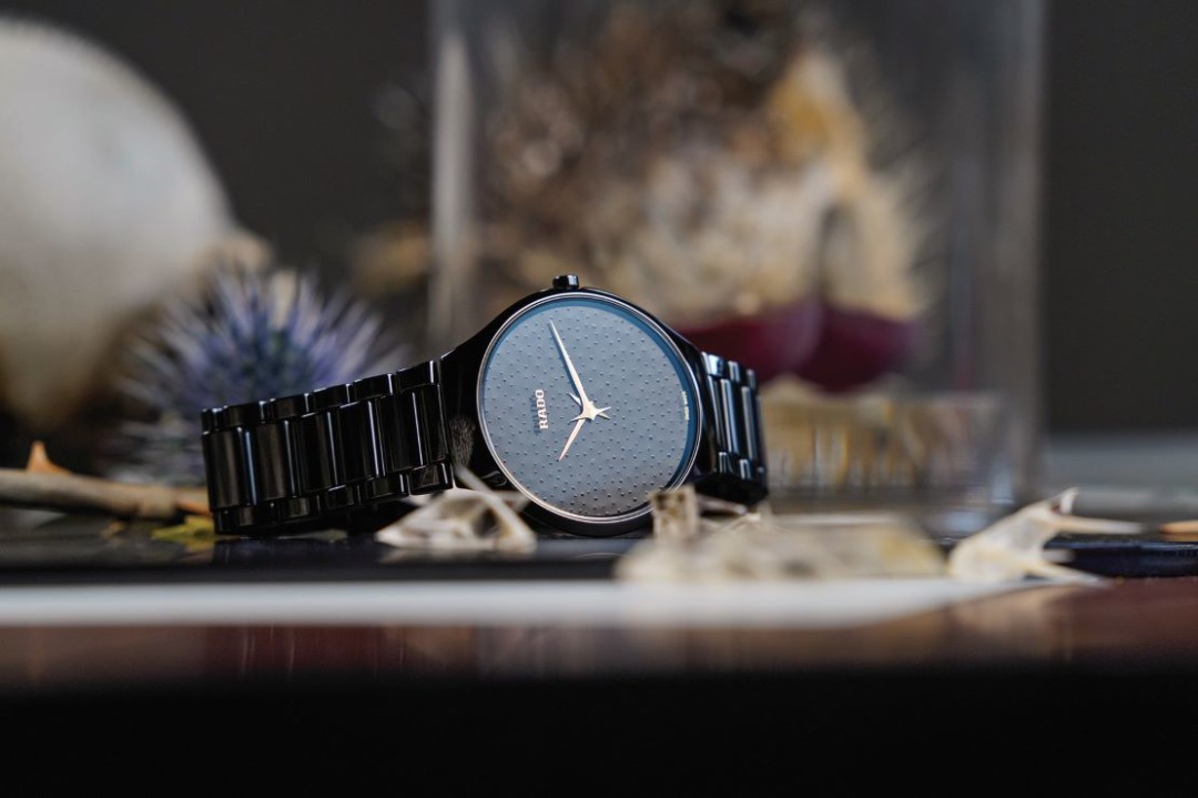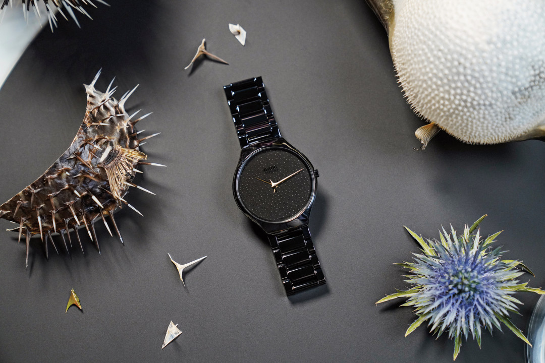 Трехмерный циферблат новинки Rado повторяет колючую текстуру фугу, а золотые стрелки – ее шипы (для точности и безупречности форм, за которые ценят швейцарские часы, были отсканированы настоящие иглы опасной рыбы). Корпус часов, заводная головка и браслет выполнены из высокотехнологичной керамики черного цвета – материала, которым бренд Rado славится и за который получил не одну награду. Ну и, конечно, надежный и точный кварцевый механизм ETA и устойчивое к ударам и царапинам сапфировое стекло с двухсторонним антибликовым покрытием.