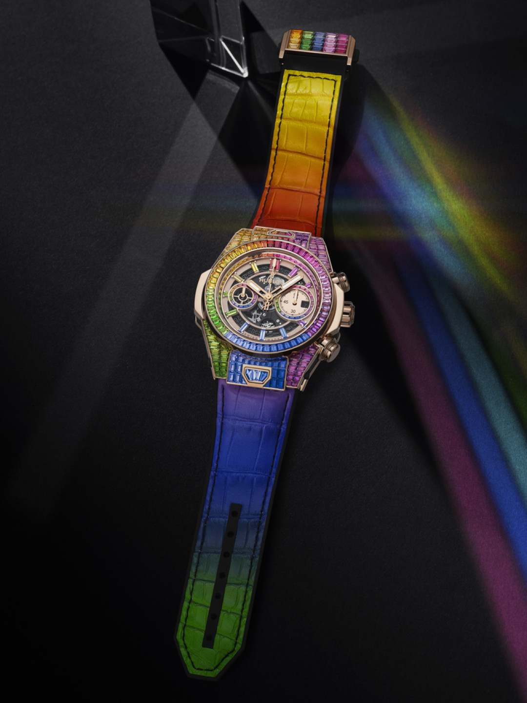 Приобрести новинку Big Bang Unico Full Baguette King Gold Rainbow можно в бутиках Hublot.