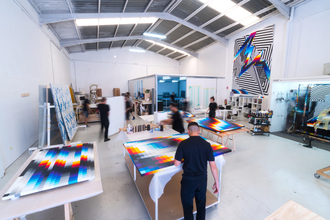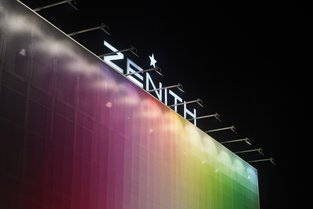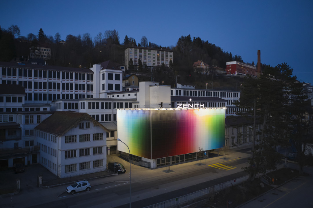 Фелипе Пантоне поднимает темы динамизма, трансформации и цифровой революции. Его почерк узнаваем и работа, выполненная на фасаде главного здания мануфактуры Zenith, сочетает в себе спектр ярких цветов и элементы цифровой графики. Мануфактура расположена в Ле-Локле — небольшом городке, включенном в список Всемирного наследия ЮНЕСКО, — где яркая работа современного художника еще раз подчеркивает связь времен.