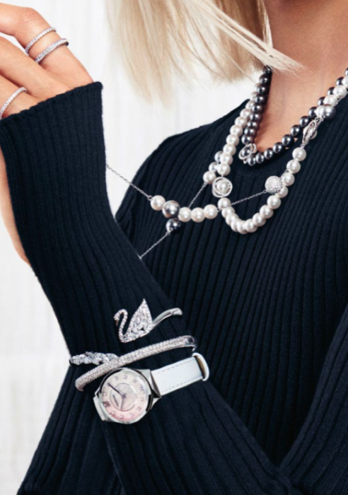 Осенне-зимнюю коллекцию Swarovski креативный директор бренда Натали Колён посвятила космосу. Поэтому в мудборде появились созвездия, планеты и очертания сверкающих сталактитов — всё это вылилось в круглые и объемные украшения, разомкнутые двойные кольца, жемчужины, напоминающие луну, и матированные прозрачные кристаллы в роли звезд. Украшения из новой коллекции универсальны: длинную цепочку можно носить как ожерелье-обруч или дополнить подвеской, а декоративные шарики на кольце можно разместить вдоль или поперек пальца. Еще одна приятная новость: лицом ювелирного бренда станет супермодель Карли Клосс.