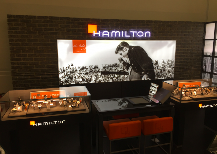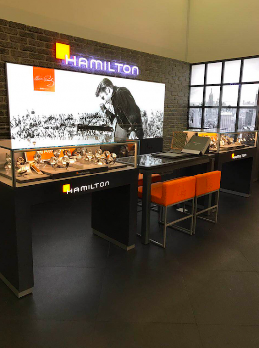 В Петербурге открылся первый в России корнер часового бренда Hamilton в России. Он расположился в салоне «Буре» на Невском проспекте. Дизайн проекта выполнен в стилистике марки: урбанистический стиль с элементами лофта — кирпичная стена гармонирует с лайтбоксом в виде панорамного окна. А благодаря имиджу с Элвисом Пресли и оранжевым элементам корнер выделяется в пространстве салона.
