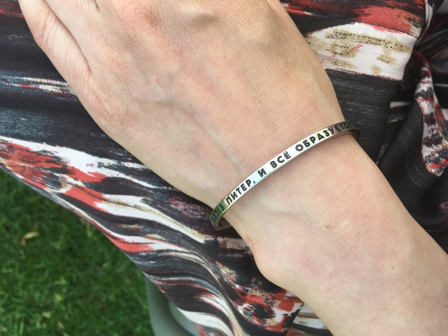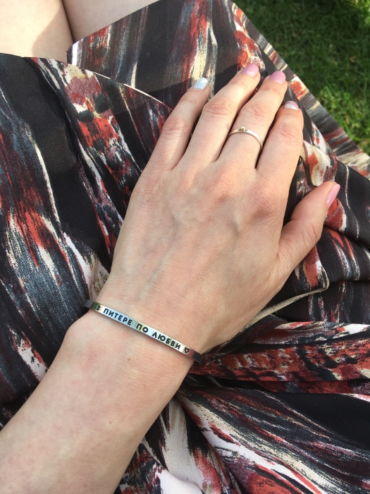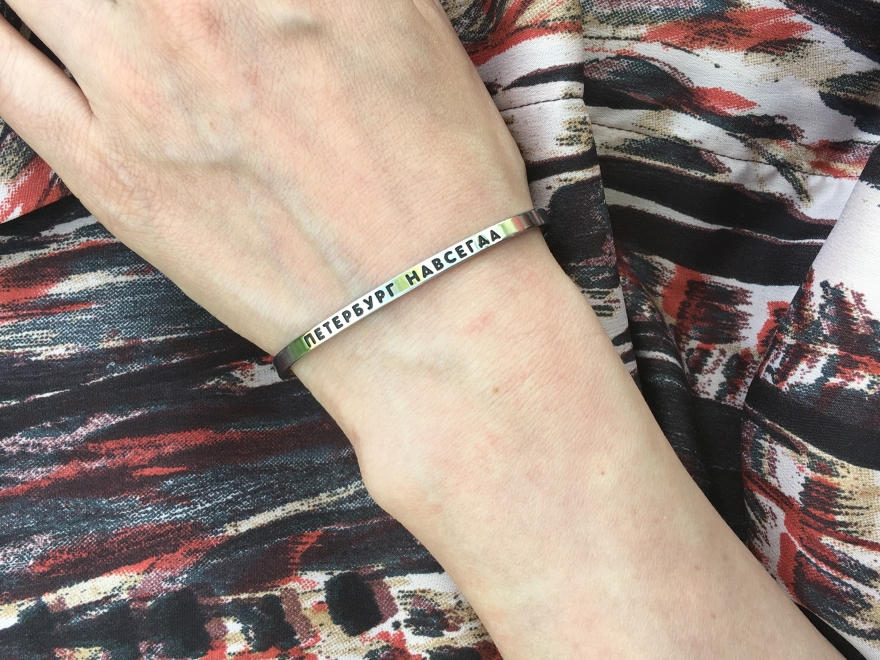 Бренд из Петербурга BNGL, известный браслетами из ювелирной стали с манифестами Каземира Малевича, выпустил новую патриотичную коллекцию. В ней — 15 украшений с признаниями в любви к городу: «Внутри себя я в Петербурге», «Не разводи мосты», «В Питер по любви», «Нева-нева-нева-неважно», «Петербург навсегда», «Коренной петербуржец», «А может в Питер, и все образуется?», «Давай по шаверме?», «В Питере — пить!», «Не хочу ничего решать, хочу в Петербург!», «Не серый, а монохромный», «Поцелуй меня в Питере», «Петербург во мне», «Успеть бы на мосты» и «Город родной — Питер, я твой». Фразы вспоминали и придумывали большой командой — вместе с магазинами 8-store и 4B monochrome, но создатели BNGL утверждают, что их список еще будет пополняться.