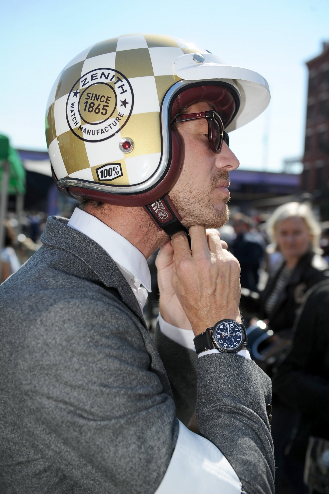 В Нью-Йорке, Лондоне, Париже, Москве и еще 645 городах мира прошел благотворительный мотопробег Distinguished Gentleman's Ride — в честь события швейцарская часовая компания Zenith выпустила часы Pilot Type-20 Chronograph Ton Up Black с автоматическим хронографом El Primero, корпусом из состаренной стали, матовым черным циферблатом и нубуковым ремешком с титановой застежкой. Она не даст часам упасть с руки даже во время скоростной гонки!