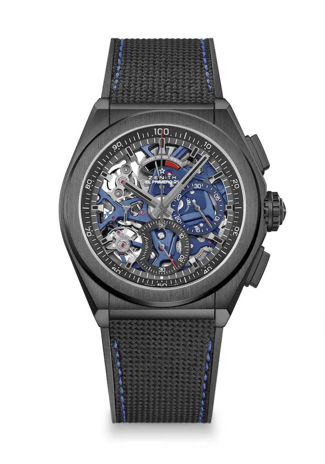 Швейцарская часовая мануфактура Zenith пополнила коллекцию Defy El Primero 21 моделью из черной керамики и с калибром синего цвета. В их основе — одноименный автоматический механизм, выпущенный в 2017 году и работающий с небывалой точностью до 1/100 секунды. Часы Defy El Primero 21 Black Ceramic снабжены тремя разными ремешками: черным из кожи аллигатора с каучуковой подкладкой и синей строчкой, черным каучуковым с эффектом «кордура» и синей строчкой, а также текстурированным синим каучуковым ремешком — примерить и купить их в фирменных бутиках Zenith смогут всего 250 счастливчиков!