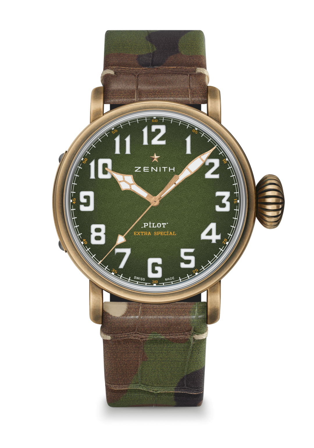 Швейцарская мануфактура Zenith представила часы Pilot Type 20 Adventure. Как и у всех моделей из этой коллекции, дизайн отсылает к многолетней истории мануфактуры: во время становления авиации Zenith создавали бортовые приборы для самолетов, даже для своего названия выбрав наивысшую точку орбиты небесного тела. Дополненные циферблатом в цвете хаки и получившие ремешок с камуфляжным принтом, Pilot Type 20 Adventure выпущены в форматах трехстрелочника и хронографа. Первый оснащен автоматическим калибром Elite 679 c 50-часовым запасом хода, а второй работает на базе легендарного (сверхточного!) механизма El Primero.
