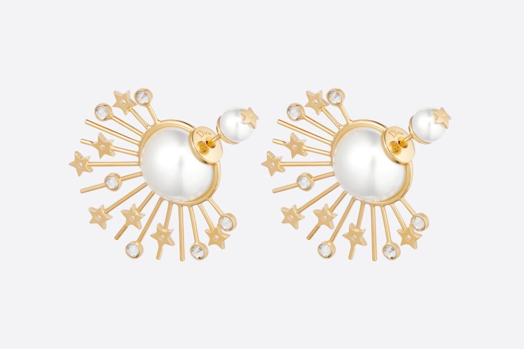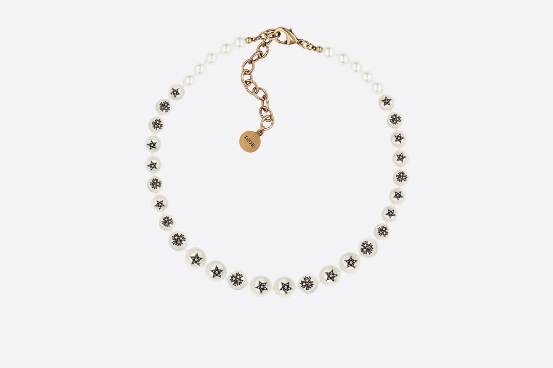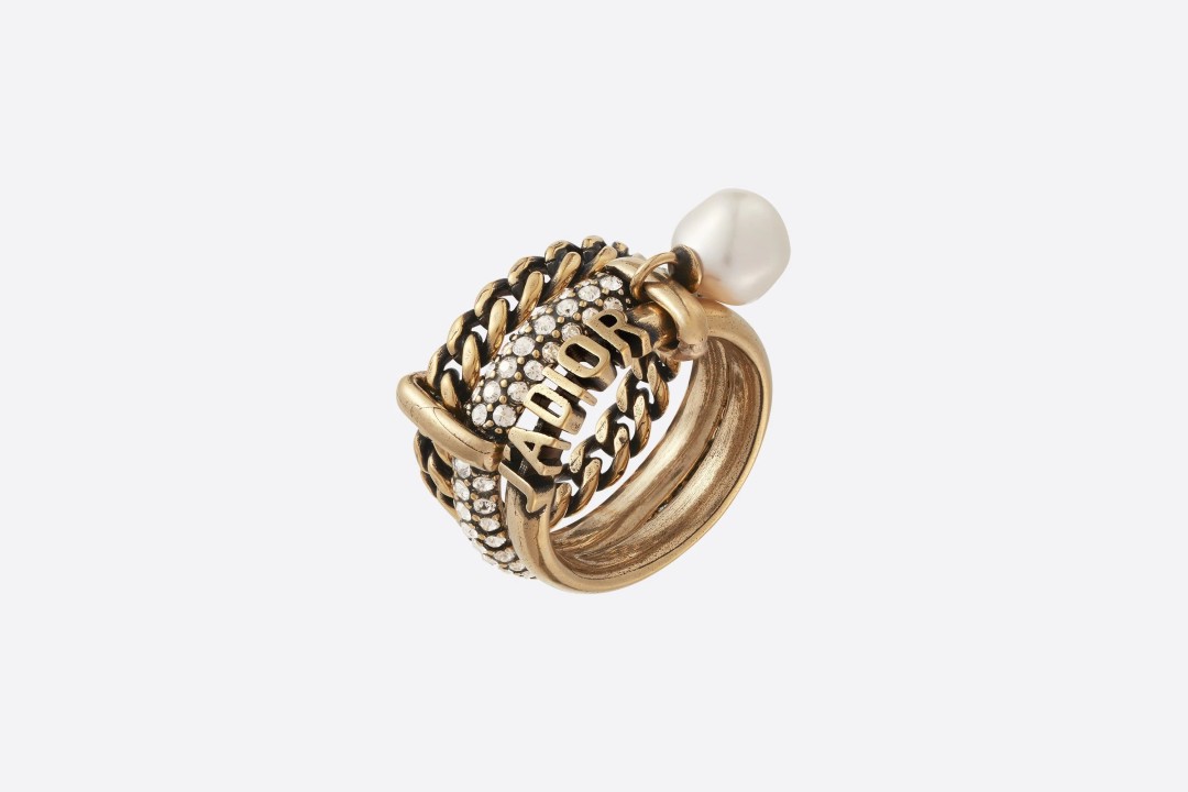 Вместе с новой осенне-зимней коллекцией Dior, посвященной тедди-герлз — девушкам из лондонских семей, которые в 1950-х годах подражали золотой молодежи, в монобрендовый бутик в Петербурге приехала линейка бижутерии. Асимметричные серьги, массивные кольца, ожерелья-чокеры и браслеты в несколько рядов сделаны из белых кристаллов, бусин из драгоценной смолы и металла с покрытием, имитирующим состаренное золото.