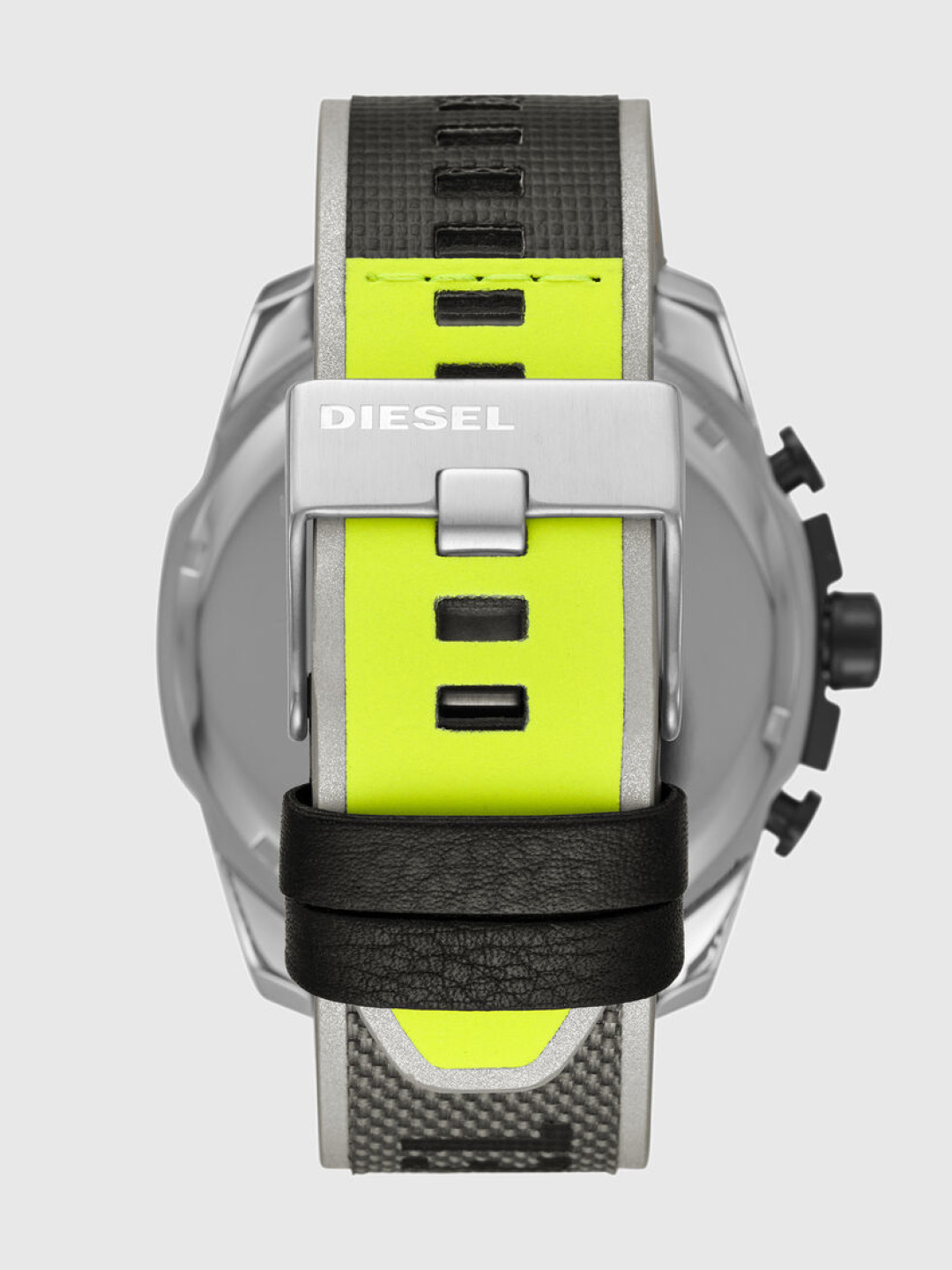 Цвет солнца, которого так не хватает в зимнее время, теперь будет радовать всех обладателей новой модели не только на циферблате, но и на хвостиках ремней. Все модели имеют японский кварцевый механизм Miyota, корпус и браслет из нержавеющей стали, нейлоновый ремешок с логотипом Diesel (логомания в тренде!), минеральное стекло. Хронографы с датой представлены в коллекциях Mega Chief и Mr.Daddy 2.0 (четыре часовых пояса).