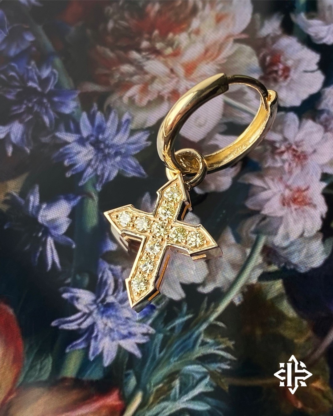 Золотая серьга с крестом, похожая на ювелирку рыцаря-пирата Фрэнсиса Дрейка или героев Рембрандта, взяла на абордаж первый шоурум бренда на Васильевском.