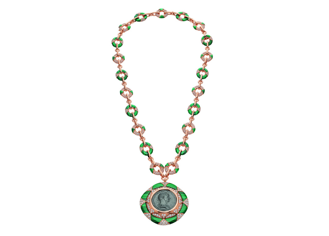 Вставлять античные монеты в золотые и платиновые рамки кулонов и чокеров ювелирный дом начал еще в 1960-е. Через двадцать лет эта история обрела название Monete и стала постоянной линией Bvlgari. Валюта древних римлян на груди не служила, в отличие от славянских монист, наглядной выпиской с банковского счета, а стала остроумной метафорой Вечного города, где древние руины бесконфликтно соседствуют с новейшими «Ламборгини». Хотя сами серебряные и бронзовые монеты (даже смешная голова Горгоны Медузы с высунутым языком) стоят совсем не шуточно — почти всем им около двух тысяч лет.