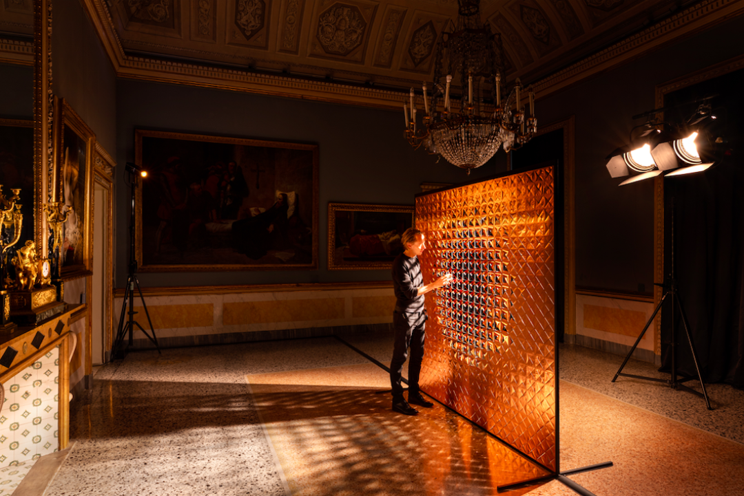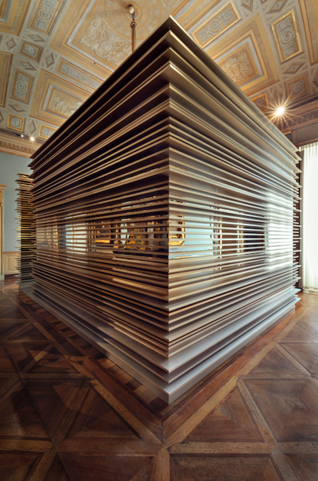 Выставка расположилась в Galleria d'Arte Moderna. Начинается она во внутреннем дворе галереи, занимает пространство парадной лестницы и переходит во внутренние помещения. В качестве кульминации — четыре монографических зала с арт-объектами художников.