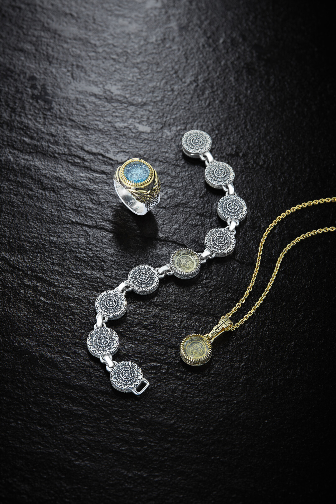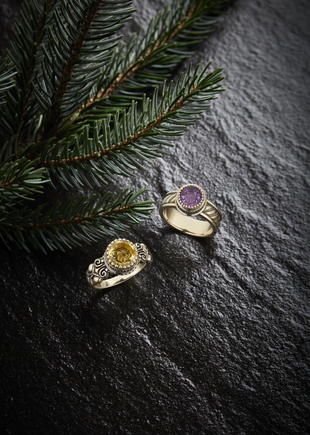В коллекции представлены нательные иконы, кресты, перстни и браслеты. Изделия украшены крупными цветными кабошонами высокой чистоты, под которыми спрятаны образы святых, выполненные в лучших традициях мелкой ювелирной пластики. Особенность коллекции — возможность персонализации: можно выбрать не только самоцветы (аметист, топаз, кварц или цитрин), но и образ святого (например, покровителя профессии). А это значит, что второго такого подарка точно не будет!