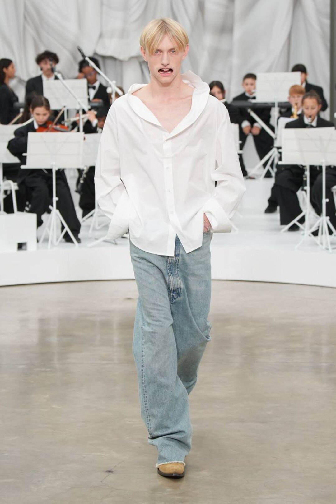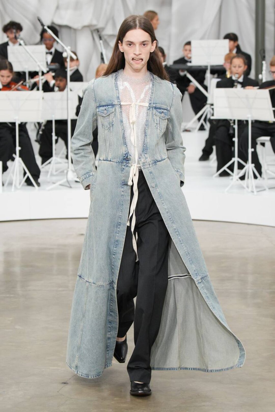 Накануне шоу гости получили метроном и флейту в качестве приглашения на показ первой ready-to-wear коллекции Гленна Мартенса для Maison Margiela. Но вместо ожидаемого сопровождения профессионального оркестра за инструменты выбежали дети — подобный прием уже использовал сам Маржела во время показа SS'90 на заброшенной детской площадке в 20-ом округе Парижа, когда малыши выносились из соседних домов, играли на подиуме и кружились вокруг моделей. Наивная какофония стала аккомпанементом второго показа новоиспеченного худрука, который, как маленькие музыканты, играет свою партию — старательно, но не всегда точно по нотам.