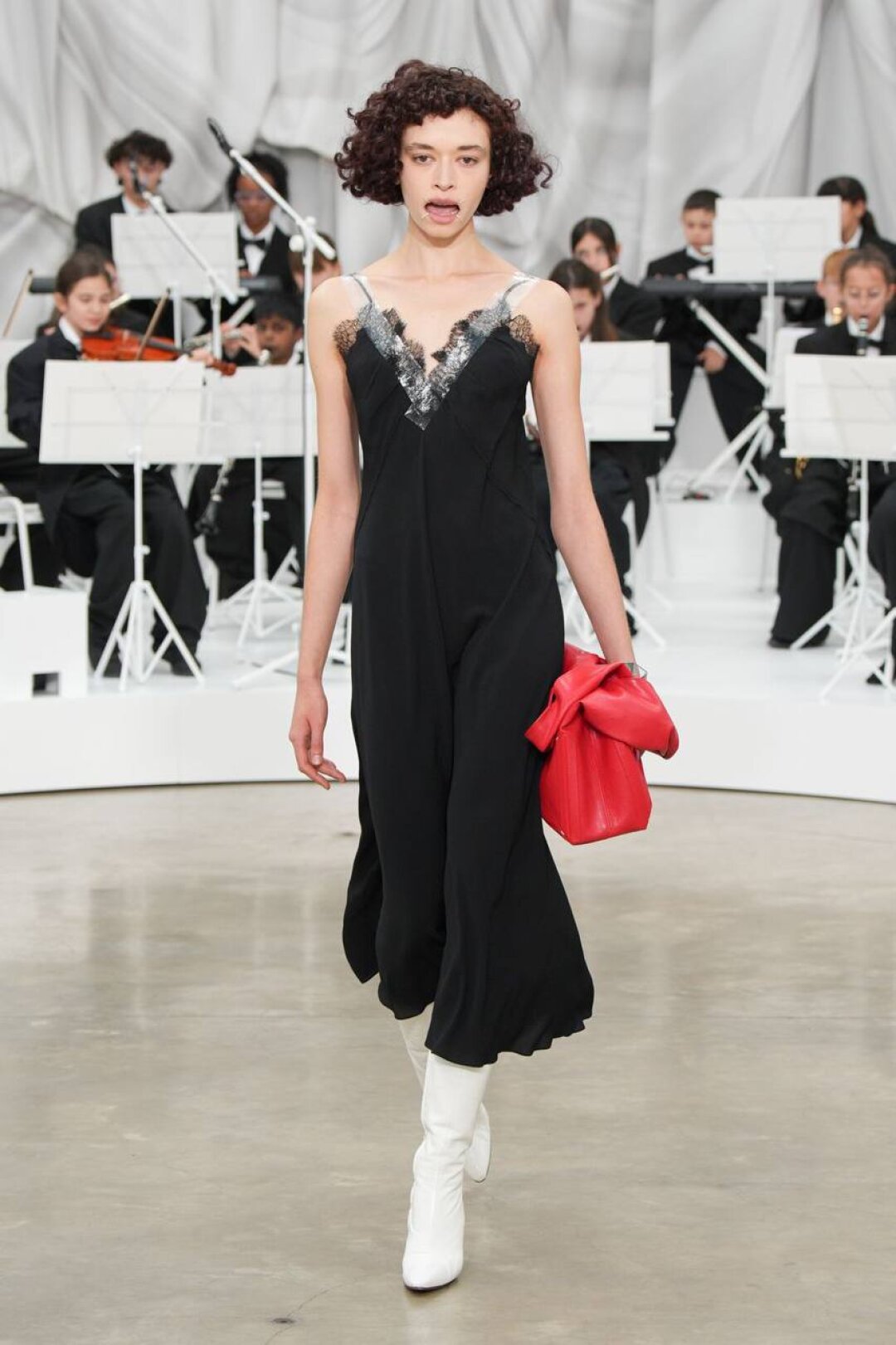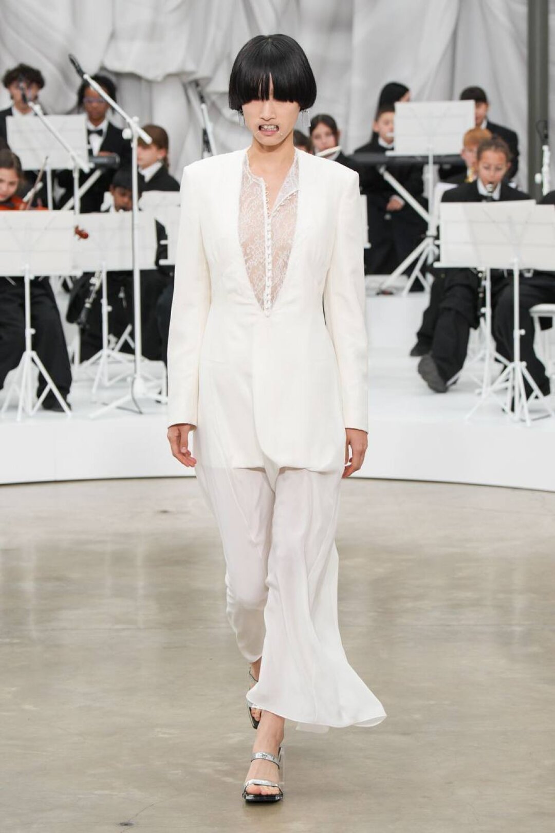 Креативный директор Maison Margiela не удержался от заигрывания с бельевой эстетикой и подготовил для следующего сезона полупрозрачные ретро-комбинации шелковые мини-платья и топы с кружевом. А еще — поддержал тренды на прозрачную обувь (увидели сабо с пластиковыми перемычками) и викторианскую моду (поженил блузы с гранд-жабо с шифоновыми макси-юбками).