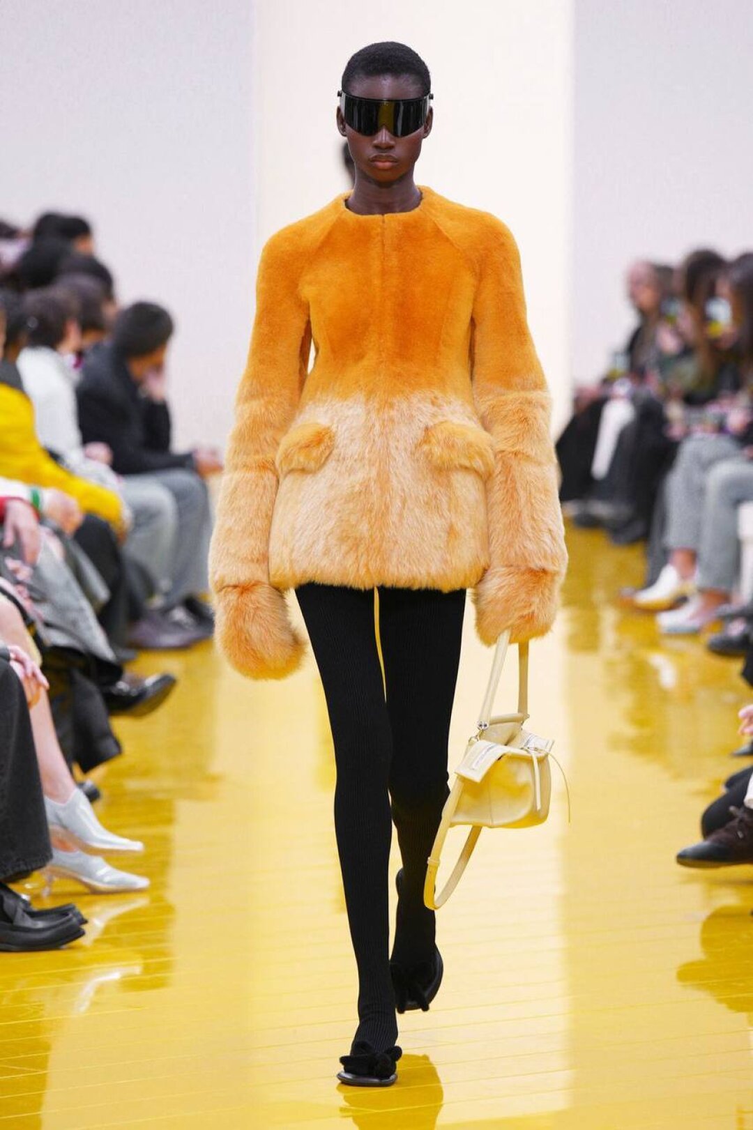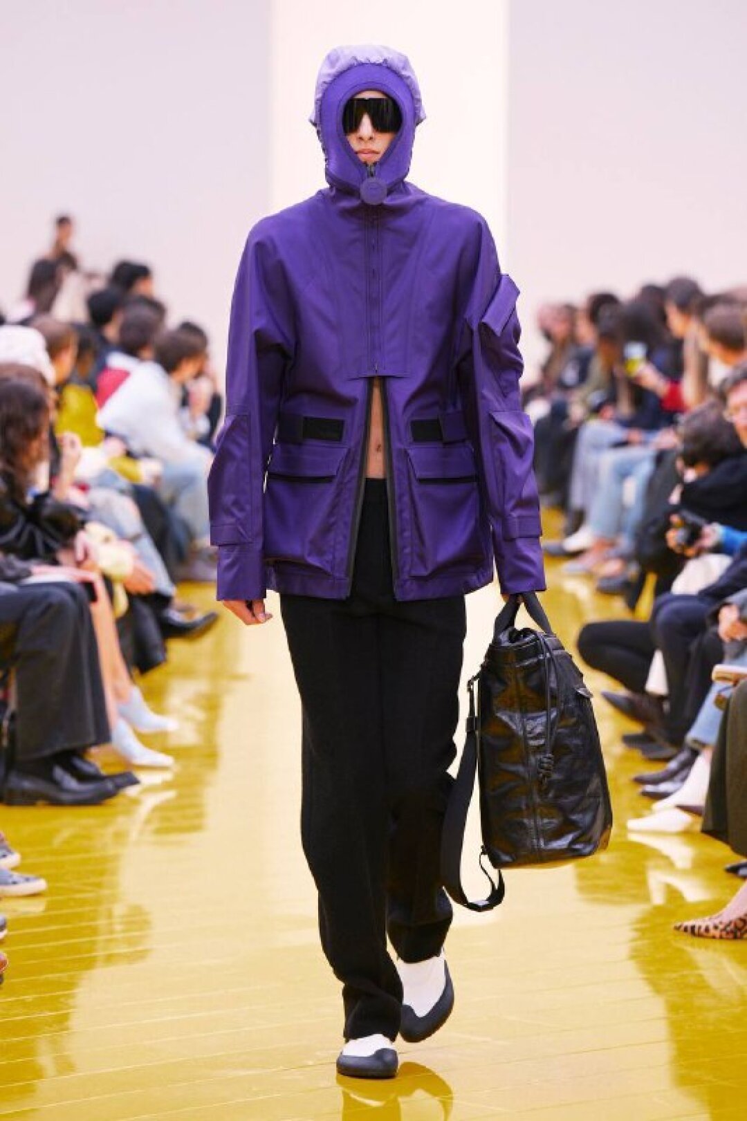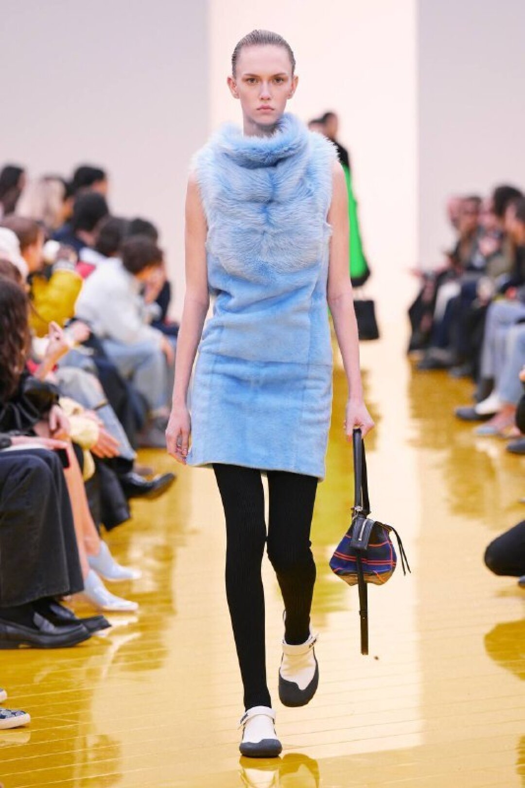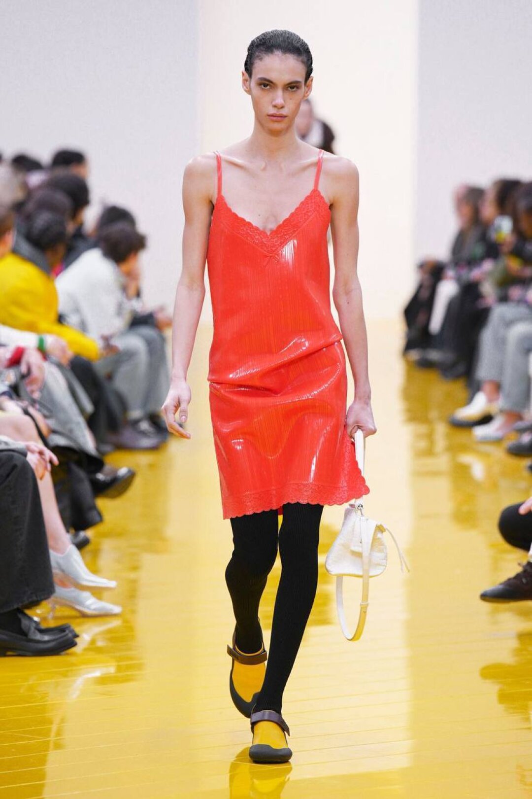 И если о необходимости шубы (чем пушистее, тем лучше!) в следующем сезоне сказал каждый, то фэшн-дуэт Джека Маккалоу и Лазаро Эрнандеса напомнили о важности аутдорных пуховиков и парок — будем носить с ворсистыми мини-платьями и колготками в рубчик, а еще — с куцыми костюмными брюками (супертренд!). Фиксируем любовь дизайнеров к винилу: недавно Хайдер Акерманн показал прозрачные юбки и плащи в духе «Американского психопата», а худруки Loewe вывели на подиум дофаминовых двойников Патрика Бейтмана в пестрых ПВХ-комбинациях, лонгсливах и брюках.