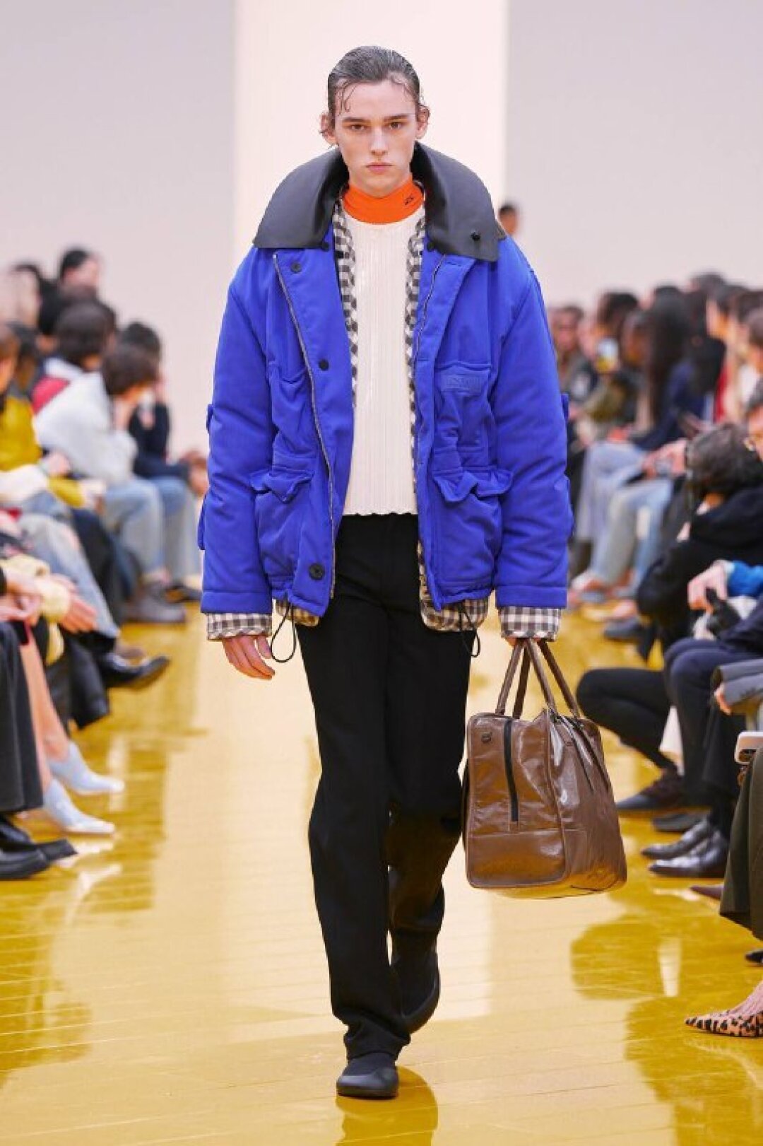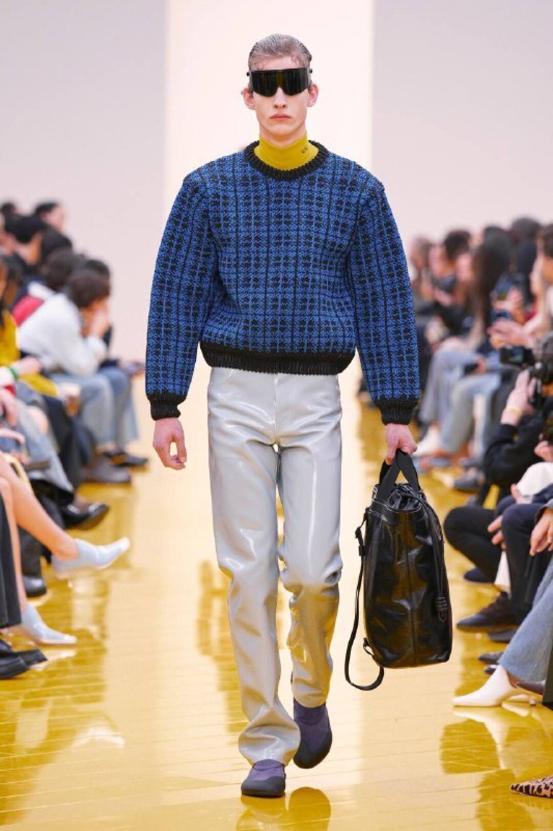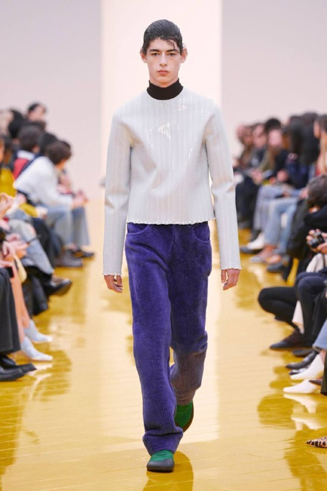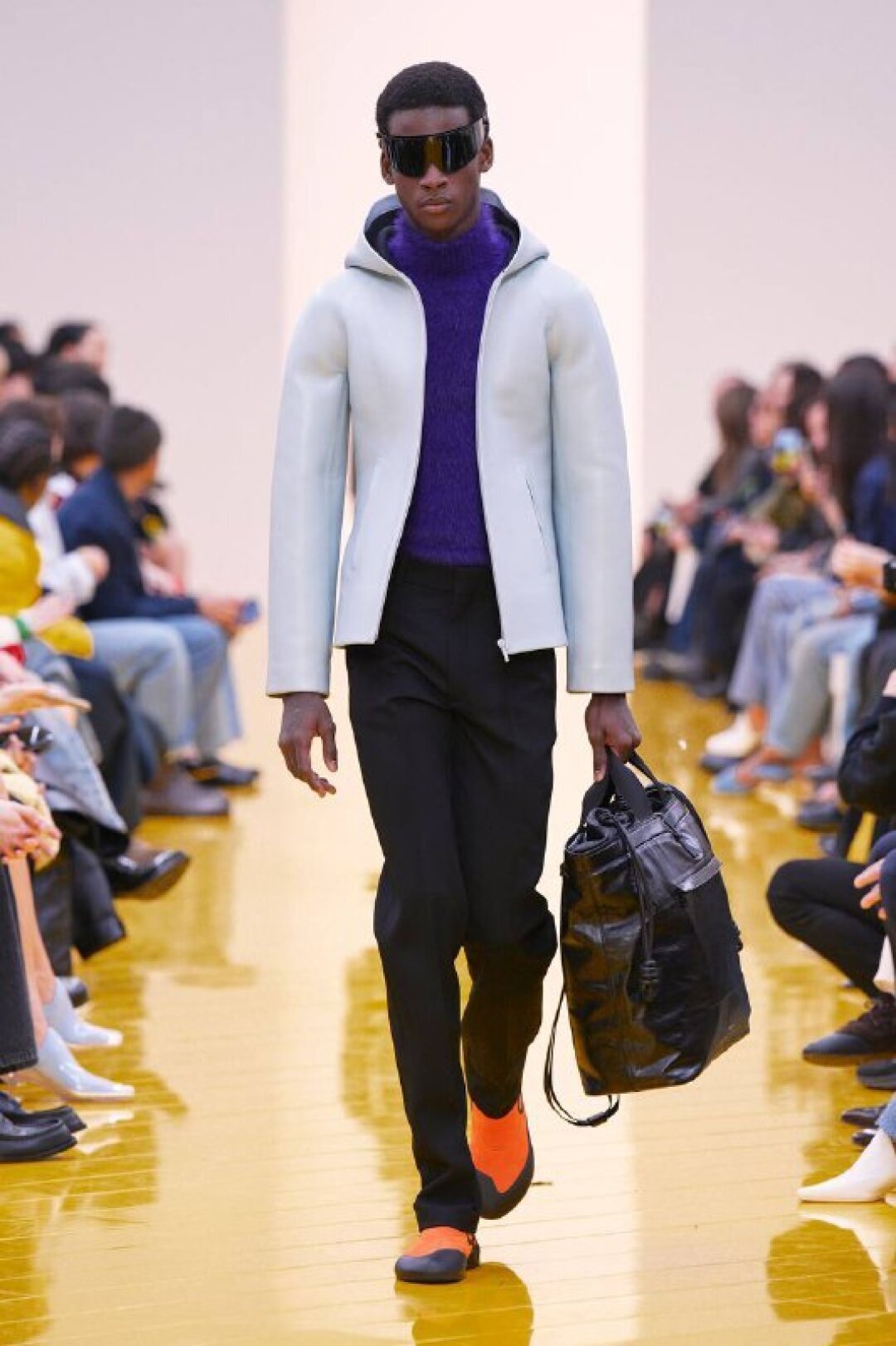 И если о необходимости шубы (чем пушистее, тем лучше!) в следующем сезоне сказал каждый, то фэшн-дуэт Джека Маккалоу и Лазаро Эрнандеса напомнили о важности аутдорных пуховиков и парок — будем носить с ворсистыми мини-платьями и колготками в рубчик, а еще — с куцыми костюмными брюками (супертренд!). Фиксируем любовь дизайнеров к винилу: недавно Хайдер Акерманн показал прозрачные юбки и плащи в духе «Американского психопата», а худруки Loewe вывели на подиум дофаминовых двойников Патрика Бейтмана в пестрых ПВХ-комбинациях, лонгсливах и брюках.