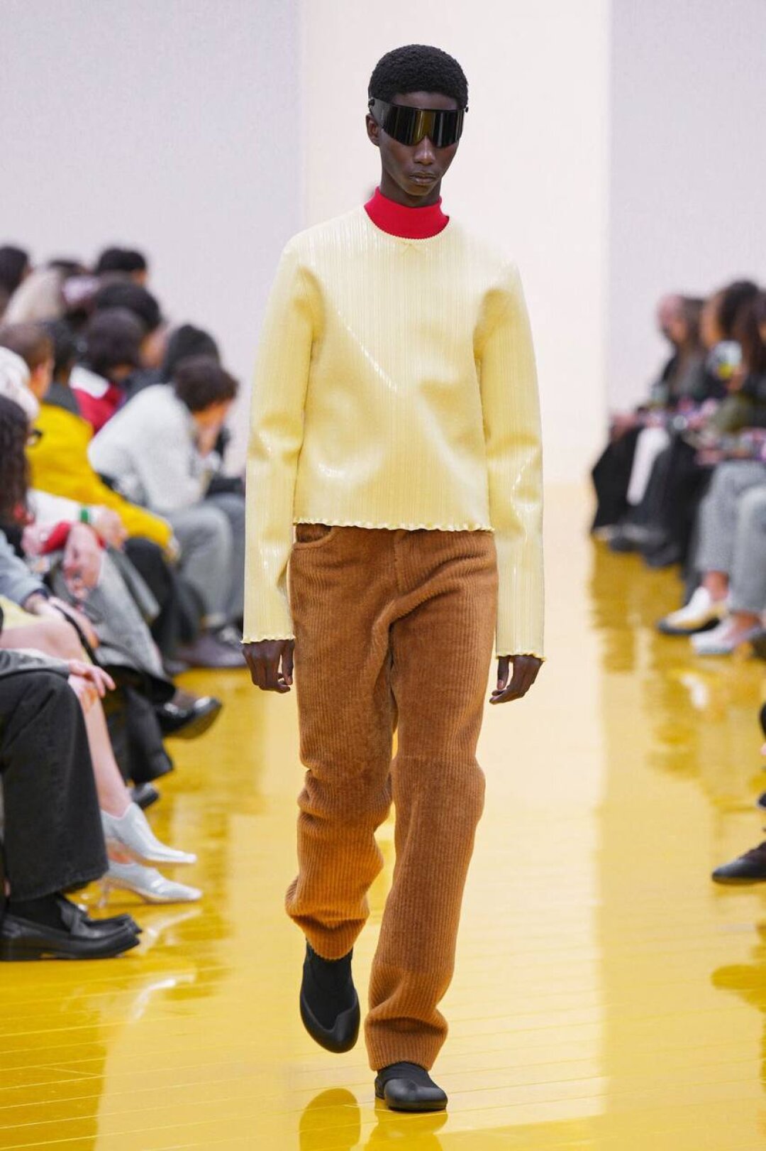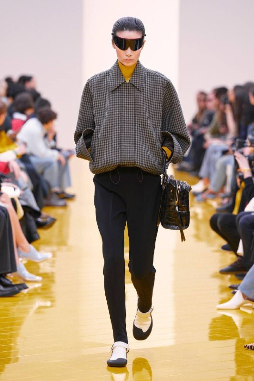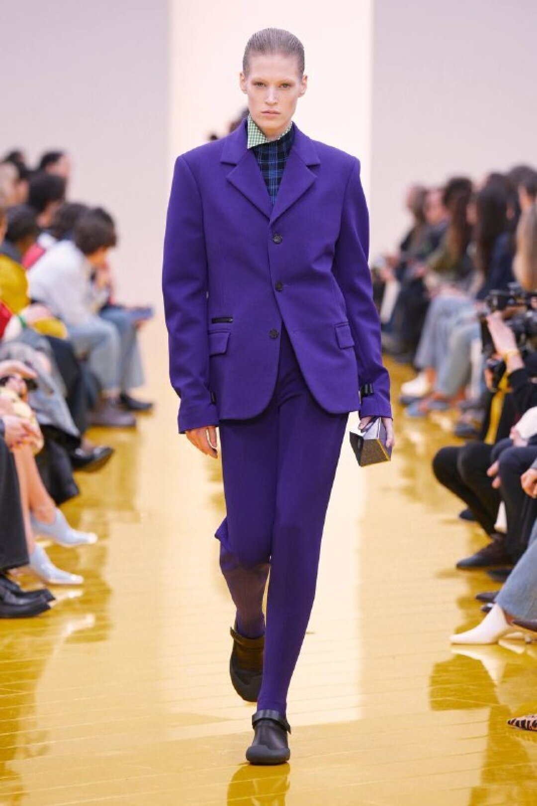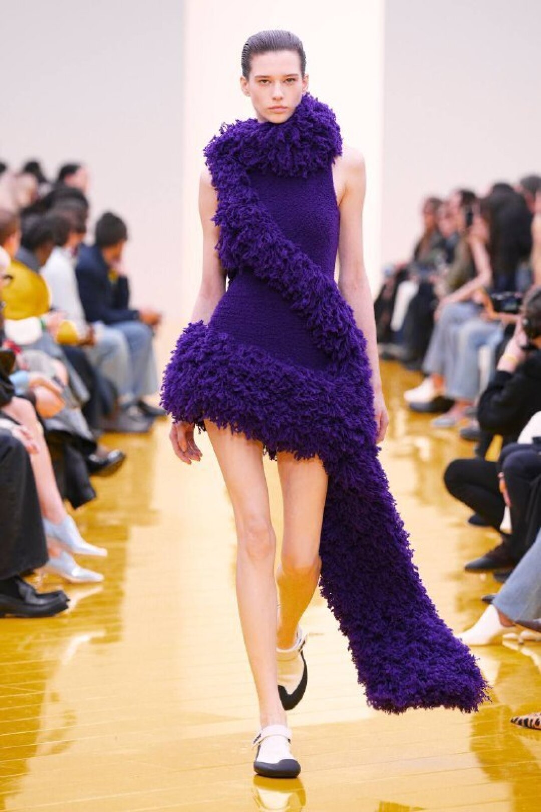 И если о необходимости шубы (чем пушистее, тем лучше!) в следующем сезоне сказал каждый, то фэшн-дуэт Джека Маккалоу и Лазаро Эрнандеса напомнили о важности аутдорных пуховиков и парок — будем носить с ворсистыми мини-платьями и колготками в рубчик, а еще — с куцыми костюмными брюками (супертренд!). Фиксируем любовь дизайнеров к винилу: недавно Хайдер Акерманн показал прозрачные юбки и плащи в духе «Американского психопата», а худруки Loewe вывели на подиум дофаминовых двойников Патрика Бейтмана в пестрых ПВХ-комбинациях, лонгсливах и брюках.