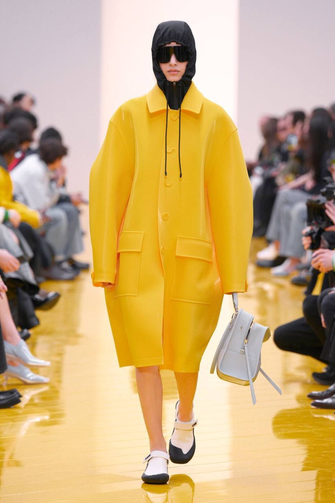 Без резиновой обувь следующей осенью никуда: будем носить непромокаемые галоши и сапоги даже с маскулинными оверсайз-пальто (лайфхак: покупайте прозрачные и надевайте вместе с разноцветными гольфами и носками!)
