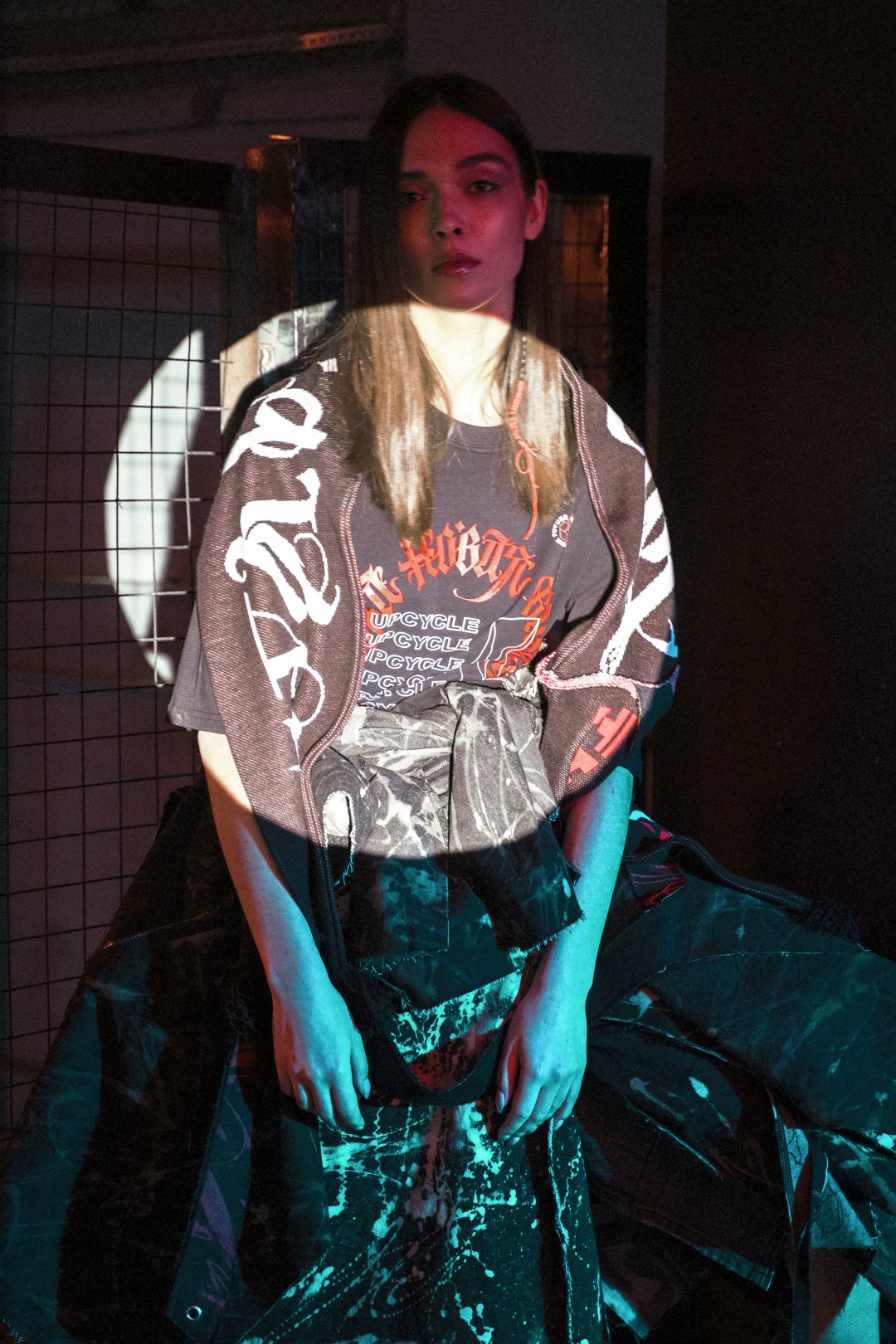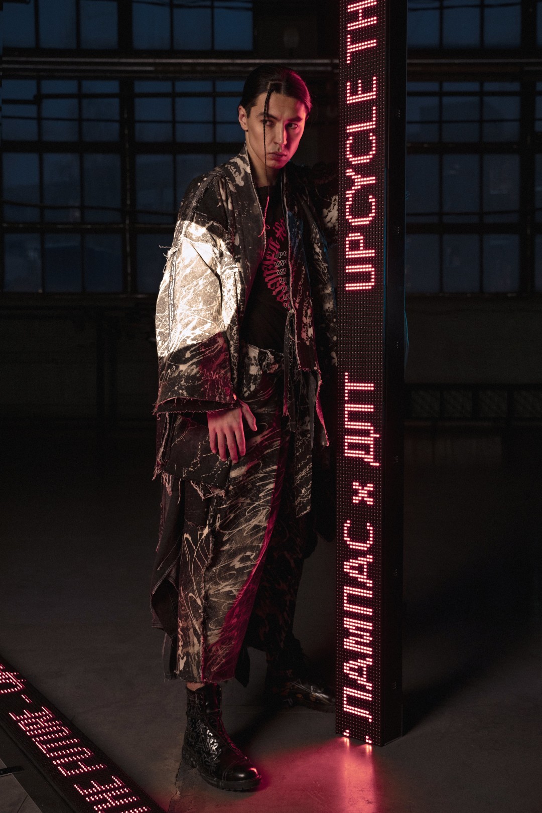 В лимитированную коллекцию вошли худи из переработанного денима с каллиграфическими нашивками, кимоно и куртки с декоративно-грубыми швами, футболки, кепки и шарфы с принтами в стиле художника. Один из смыслов «капсулы» – показать, что ненужные вещи, переставшие радовать, могут стать основой для новых предметов моды и искусства. Главное, захотеть дать им «вторую» жизнь.
